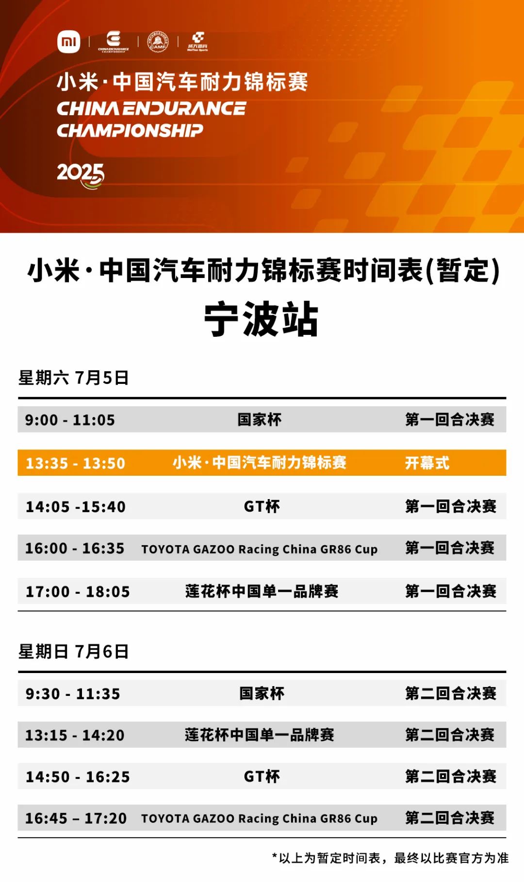 2025小米·中国汽车耐力锦标赛宁波之役将延续揭幕战的火爆战局。