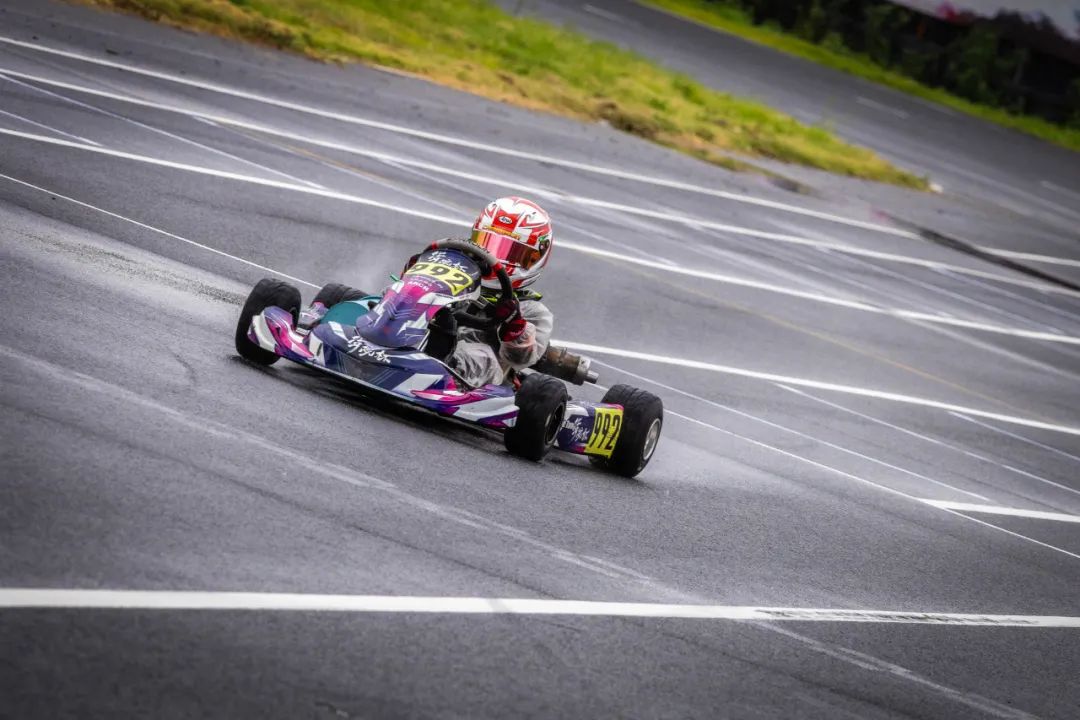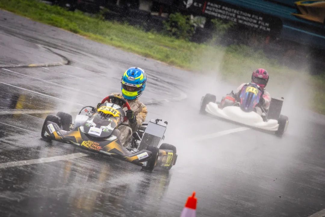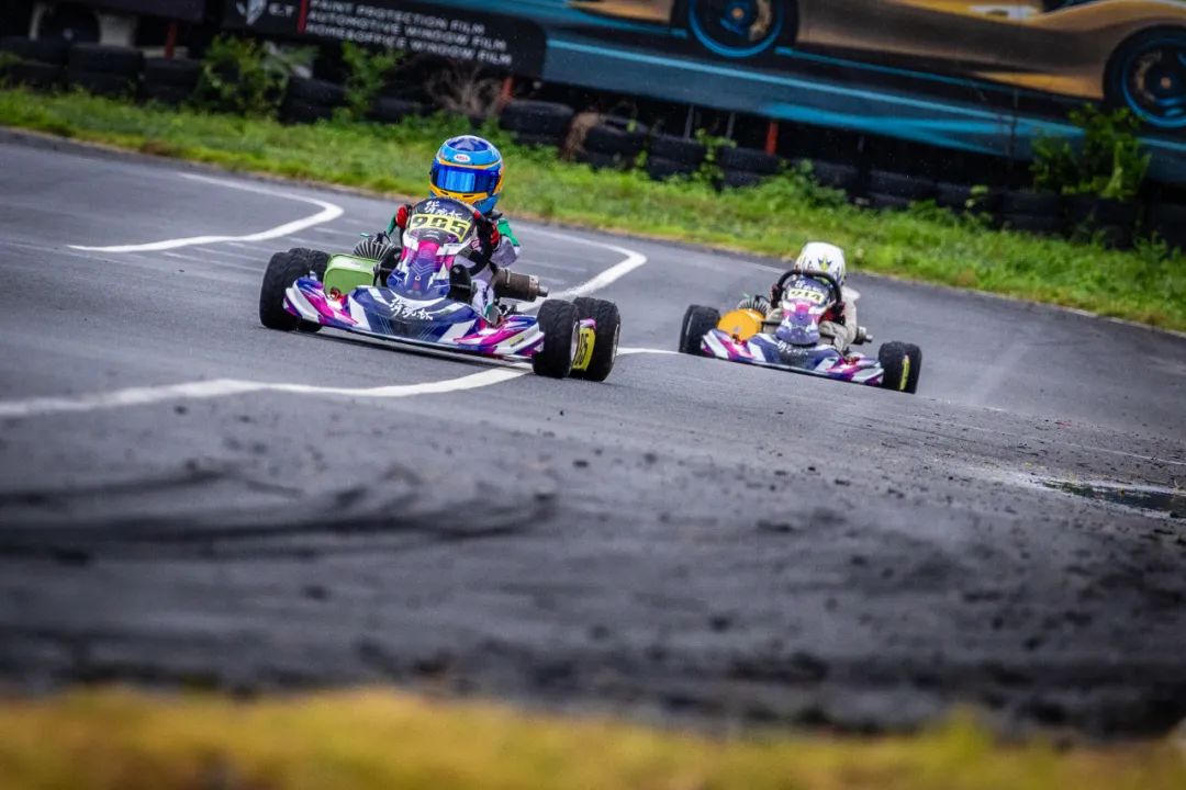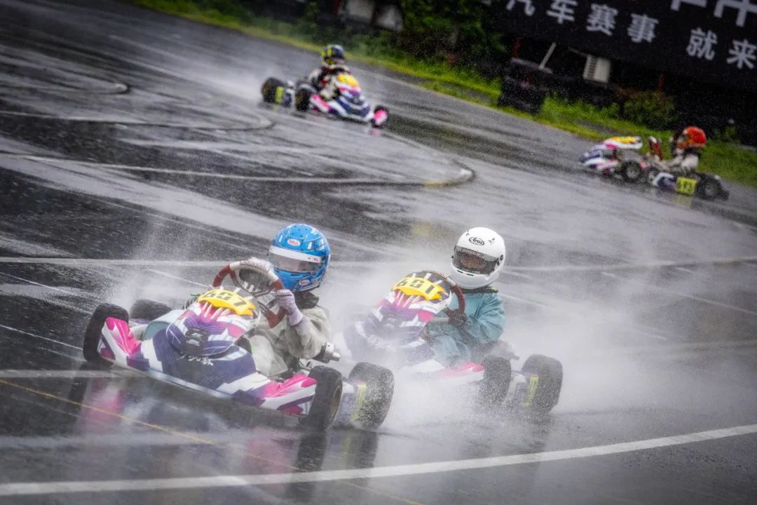决赛共有6圈,王鈞宥杆位发车。本节比赛中,赛场区域持续在下雨,面对湿滑的赛道条件,小车手们做出了谨慎的应对,稳稳地行驶在赛道上。
