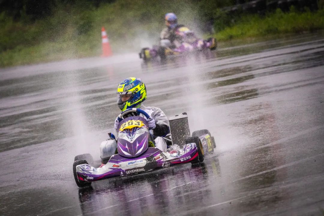 其他使用雨胎的车手,也稳定好状态维持自己的节奏。赵梓霖稳在第三,在赛程后段,防守住了后方渐渐追近的秘晞朗和张孝贤。