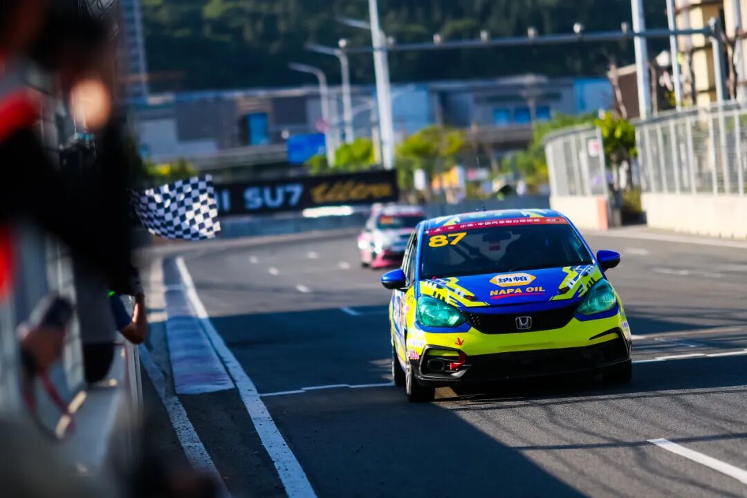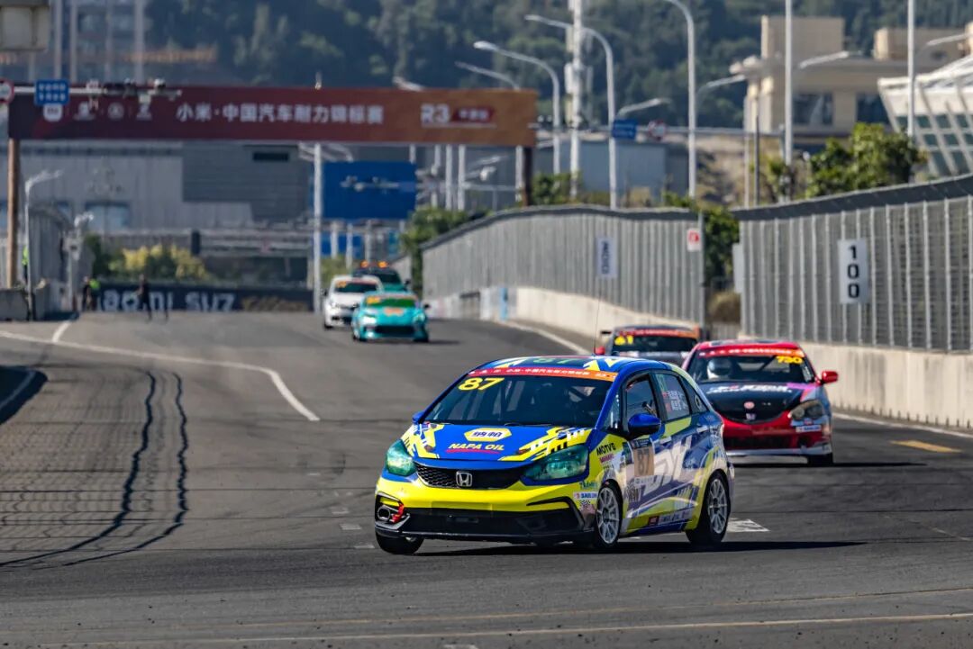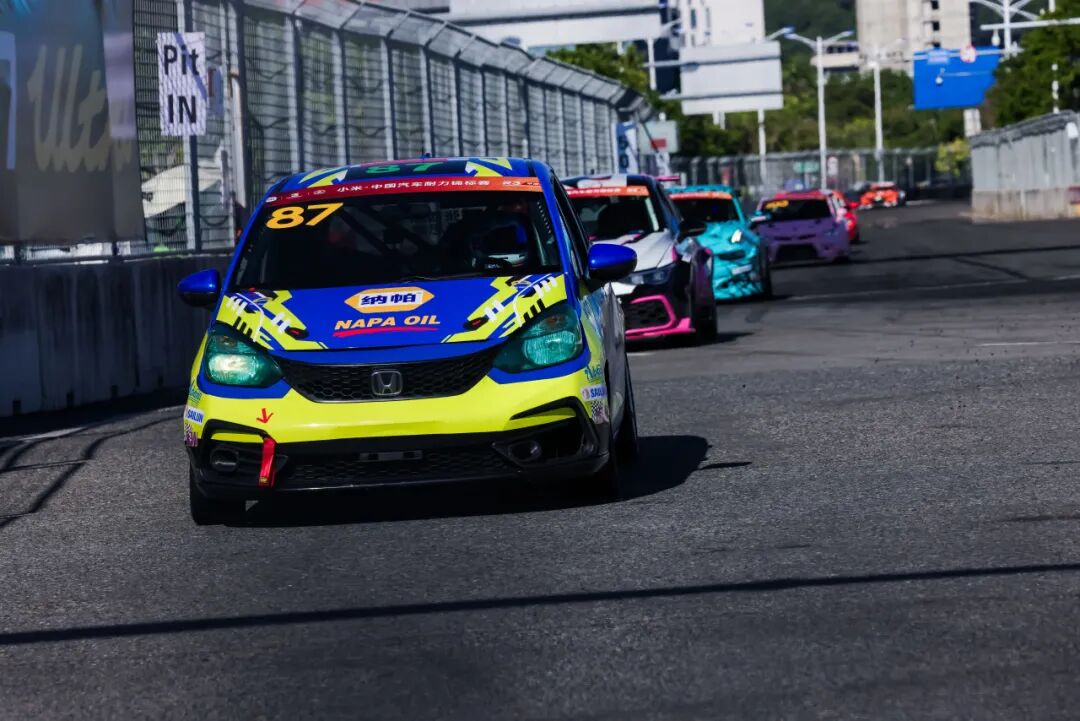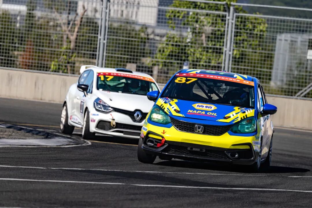 赛季第三站的平潭如意湖分站,两位车手再度聚首。87号车组张酉麟/桑思恩从排位赛开始就牢牢将国家杯1600组别的头名锁定于手中。然而第一回合的赛事对他们而言并非一帆风顺,桑思恩驾驶这台本田飞度GR9赛车作战时,曾多次遇到让他感到惊恐的突发状况。