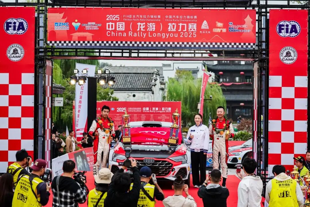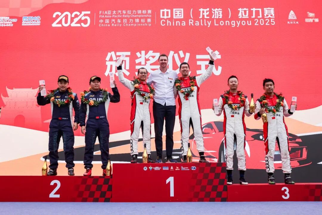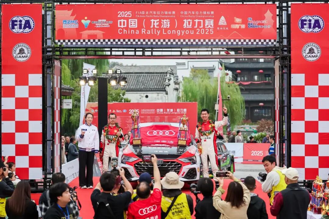 10月26日,2025年国际汽联亚太汽车拉力锦标赛-中国(龙游)拉力赛(以下简称APRC)暨2025年龙游·中国汽车拉力锦标赛(以下简称CRC)圆满落幕。斩获全场冠亚季军的车手分别是:一汽奥迪拉力车队林德伟/乐柯鹏,OSIAS天境车队的姚秀磊/陈远松,一汽奥迪拉力车队范高翔/韩啸。