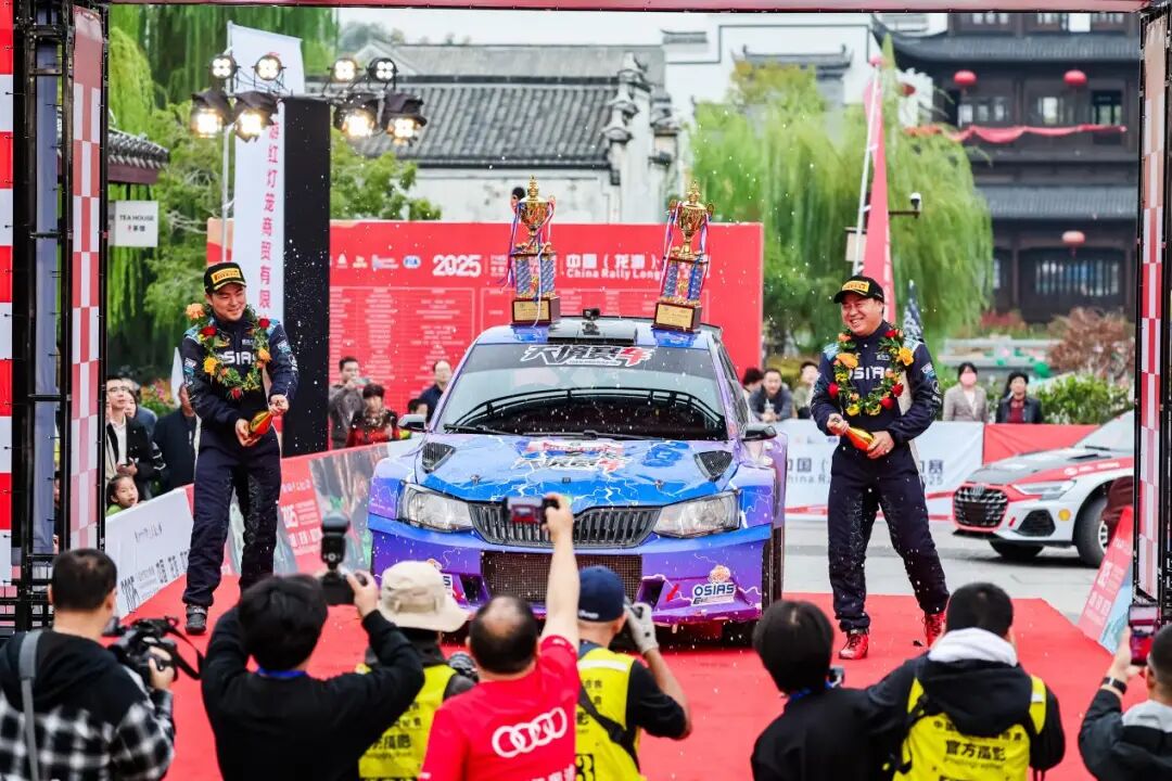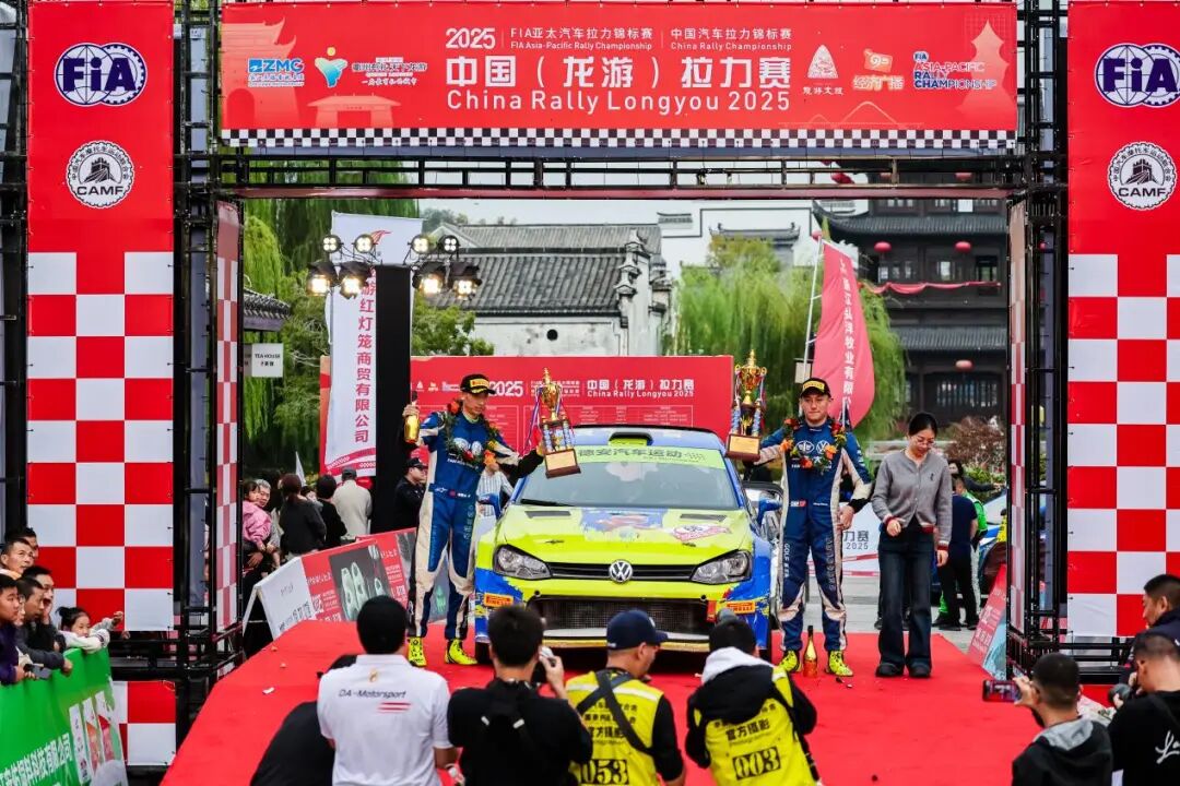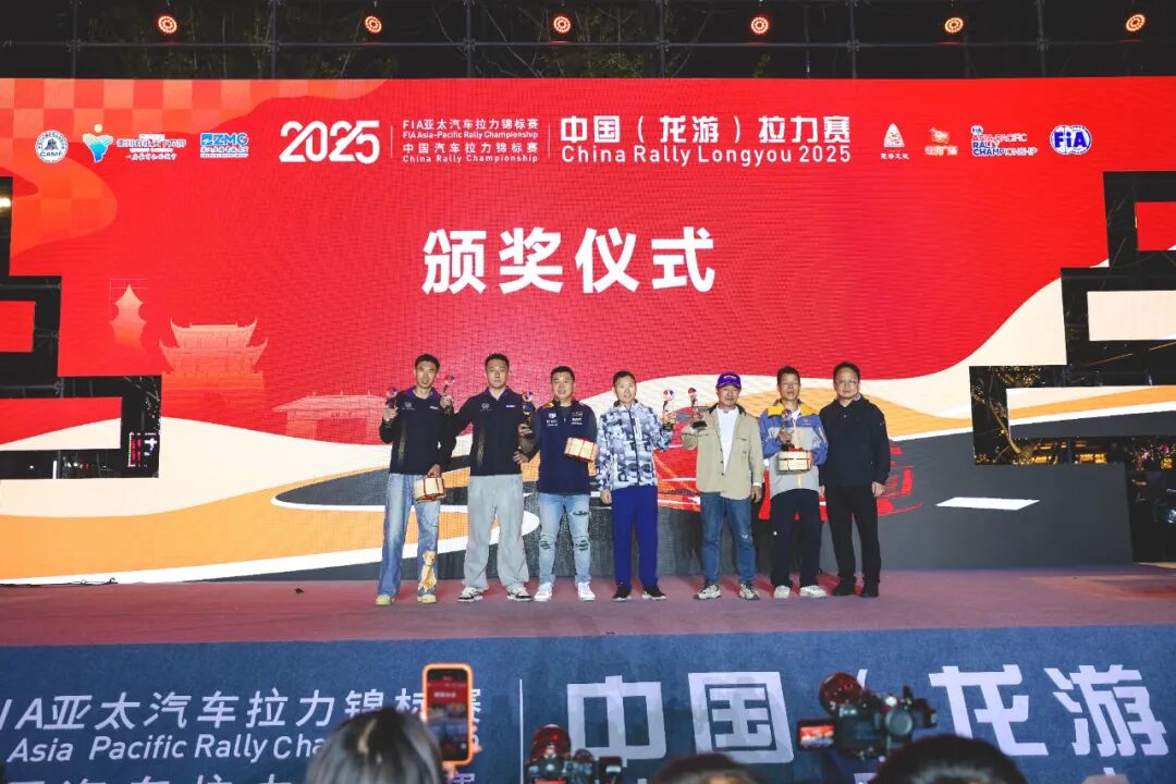 颁奖仪式上,车手们于大南门池畔广场再度集结,现场数千观众共同见证新一届冠军的诞生。在五星红旗升起之时,拉力精神也深深植入了龙游人民的内心。而经过20余年的发展,龙游拉力赛也从单一体育赛事升级为城市发展的重要引擎。龙游通过持续举办高端赛事,成功推动“体育+文化”“体育+旅游”“体育+科技”等产业深度融合。当车手们历经香槟的洗礼后,APRC/CRC龙游站正式落幕,让我们期待下一次的拉力赛事再度呈现精彩!