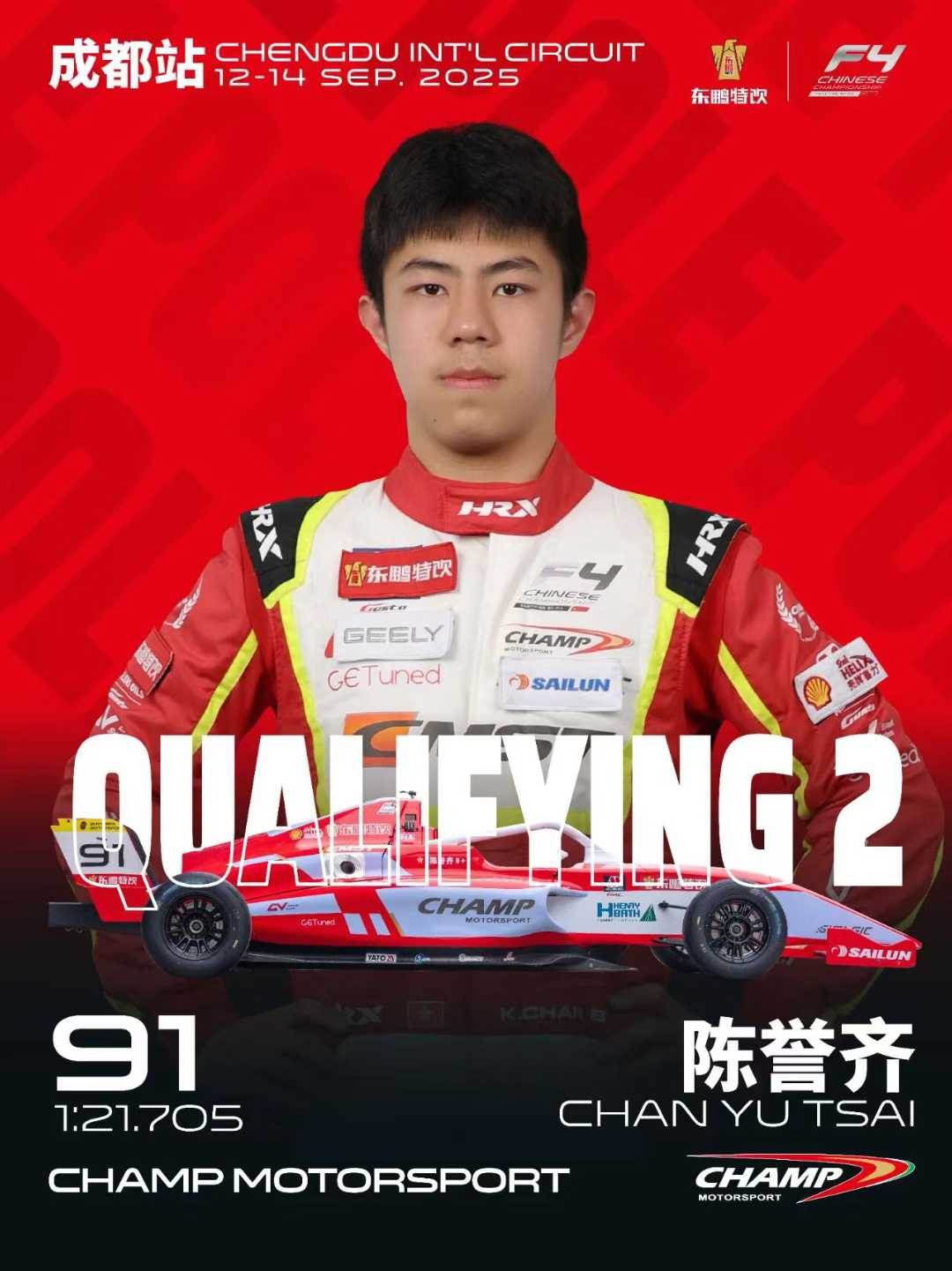 CHAMP MOTORSPORT小将陈誉齐带着年度车手积分榜第二的身份进入本站,向总冠军发起最后冲击;2023赛季F4中国锦标赛年度总冠军帝雅戈强势回归,代表CHAMP PRO RACING重返中国F4赛场;中国香港知名女车手杨嘉怡加入CHAMP MOTORSPORT阵营,迎来个人国家级F4赛事首秀;同时,凯飞车队旗下罗檍丰与曾伟业也连袂出战,共同竞逐大师组荣誉。