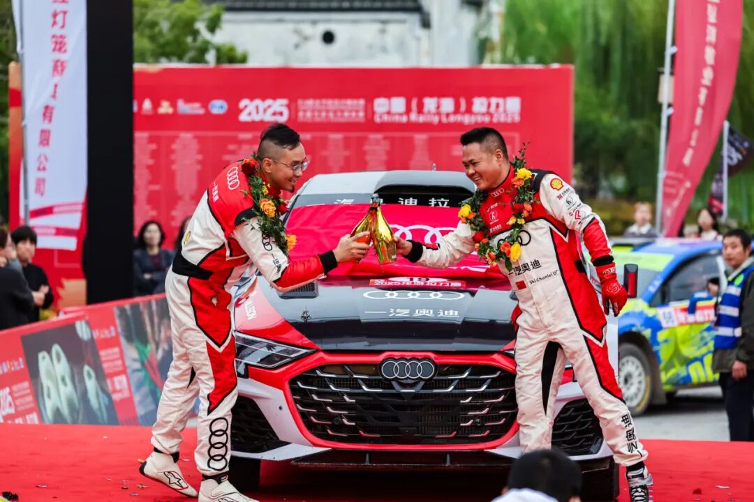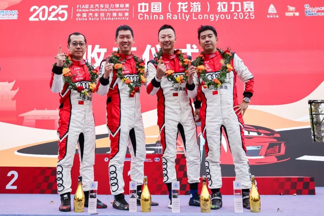 10月26日,2025年FIA亚太汽车拉力锦标赛(APRC)龙游站暨龙游·中国汽车拉力锦标赛(CRC)圆满落幕。一汽奥迪拉力车队在本场亚太拉力赛事呈献卓越表现,林德伟/乐柯鹏车组斩获全场及联合会杯冠军,范高翔/韩啸车组夺得全场季军及联合会杯亚军,石春雷/李智车组获得全场第六。三位车手助力一汽奥迪拉力车队夺得联合会杯队赛冠军、S10组冠军。