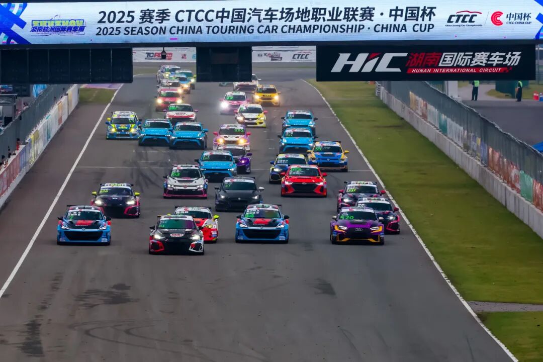 CTCC中国杯湖南株洲站第二回合作为全年最后一场决赛,TCR组别呈现多强争霸的激烈局面。从杆位发车的刘子辰/吴怡帆/刘柠车组在比赛中一度被对手超越,但在完成强制停站后奋起直追,迅速夺回第二位置并快速逼近领跑者。随后安全车再次出动,待比赛恢复时仅剩最后2圈,81号车组在极限冲刺中成功反超对手,重返全场头名并锁定胜局,以两连胜的辉煌战绩为年度征程画上圆满句号。