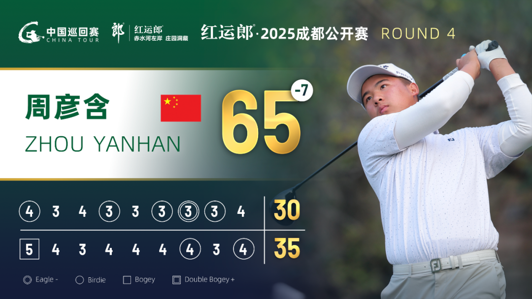 北京时间11月23日,红运郎·2025成都公开赛决赛轮在麓山国际乡村俱乐部上演巅峰对决。中巡九冠王周彦含与状态火热的金博鏖战18洞,以-21杆并列领先杀入加洞赛。最终周彦含在加洞抓鸟,成功加冕个人中巡赛第十冠。金博虽然全天Bogey Free、轰出7只小鸟,仍以一杆之差屈居第二。这场跨越19洞的对攻大战,燃爆成都。