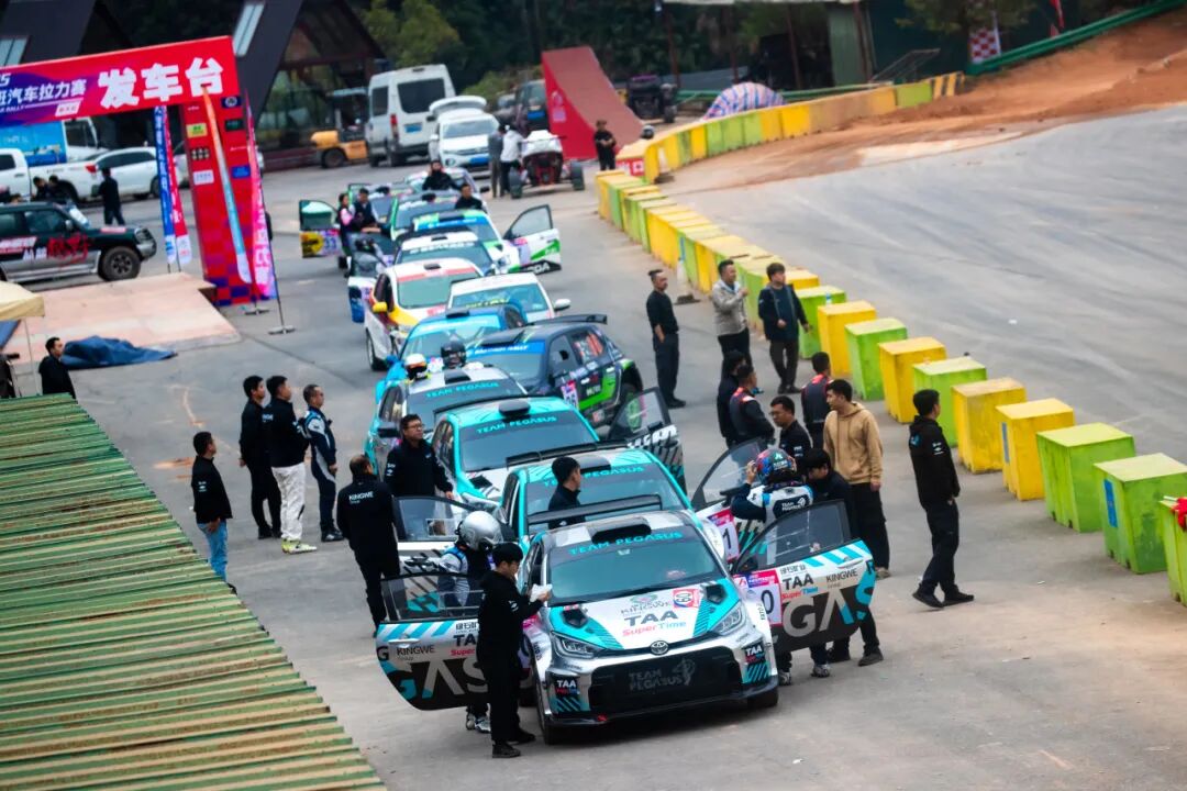 12月5日,2025华家班汽车拉力赛(韶关站)开幕前夕,星速体育旗下两支车队——Team Pegasus星速赛车和Pegasus Racing星速车队携最新款的丰田及现代Rally2 赛车参赛,目前已顺利完成试车环节。