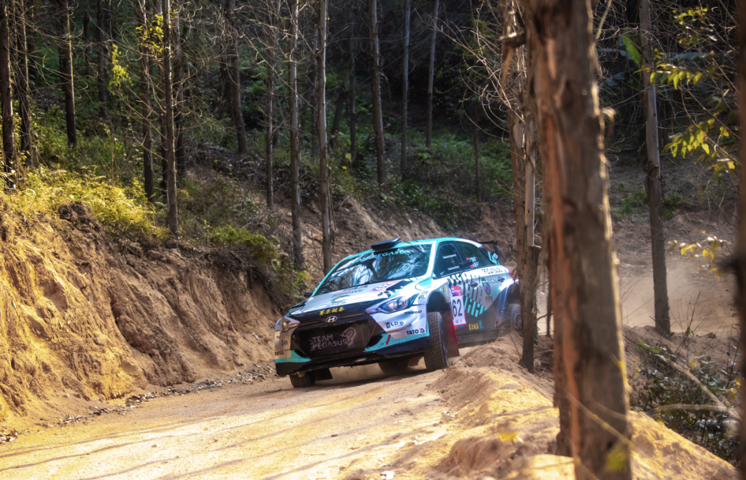 Team Pegasus星速赛车61号车组傅军飞/周勇在超级短道初试牛刀,领悟了全新现代i20 N Rally2 step2赛车的开法,以全场第9名进入到SS2的比拼中。