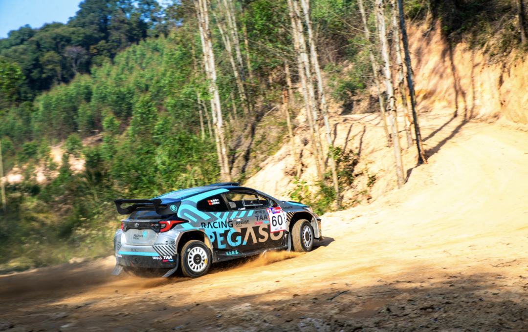 Team Pegasus星速赛车60号车组林德伟/刘田杨先拔头筹,在短道赛中获得全场第一。可惜的是,林德伟在SS2全速前进时不巧偶遇赛道塌方,不幸退赛。
