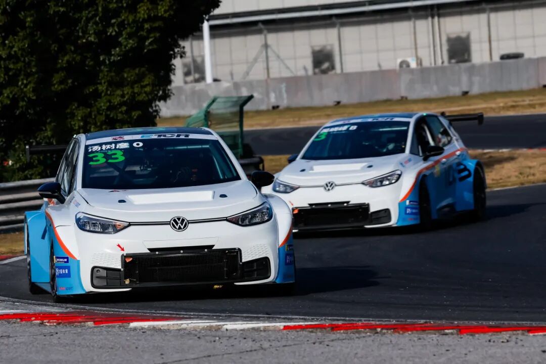 CTCC电动赛车杯年度揭幕战在湖南国际赛车场点燃战火,333 E Racing Team全新打造的上汽大众ID.3赛车首度亮相赛场便展现强劲速度。第一回合正赛,3号车手何晓乐与对手展开激烈缠斗,斩获全场季军。33号车手汤树彦凭借稳健的长距离节奏把控能力,以全场第四冲线。