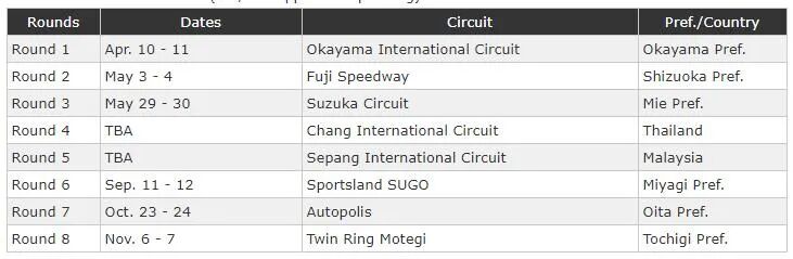 与此同时Super GT也颁布了2021赛季的临时赛历,新赛季将于4月10-11日于冈山国际赛车场揭幕,第八站也是赛季收官战将于11月6-7日回归茂木双环赛道。
