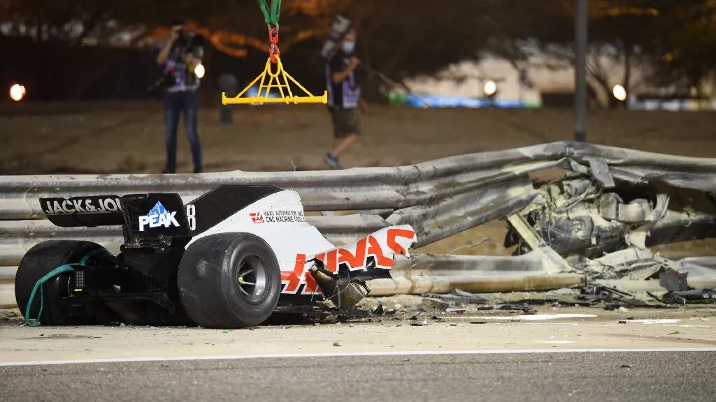 格罗斯让的赛车在这次恐怖的碰撞中“一分为二”,碎片四处散落,赛车单体壳座舱部分甚至“镶入”了护栏之间。但在单体壳座舱、HALO、HANS及防火赛车服等措施的多重保护下,格罗斯让得以迅速自行逃离座舱,医疗车驾驶员Alan van der Merwe第一时间赶到现场,和医疗代表Ian Roberts一同将法国人搀扶至安全地带,另一方面赛道工作人员也立即控制住了火情。经医疗检查后,格罗斯让并无大碍,不过手部和脚踝处有烧伤。