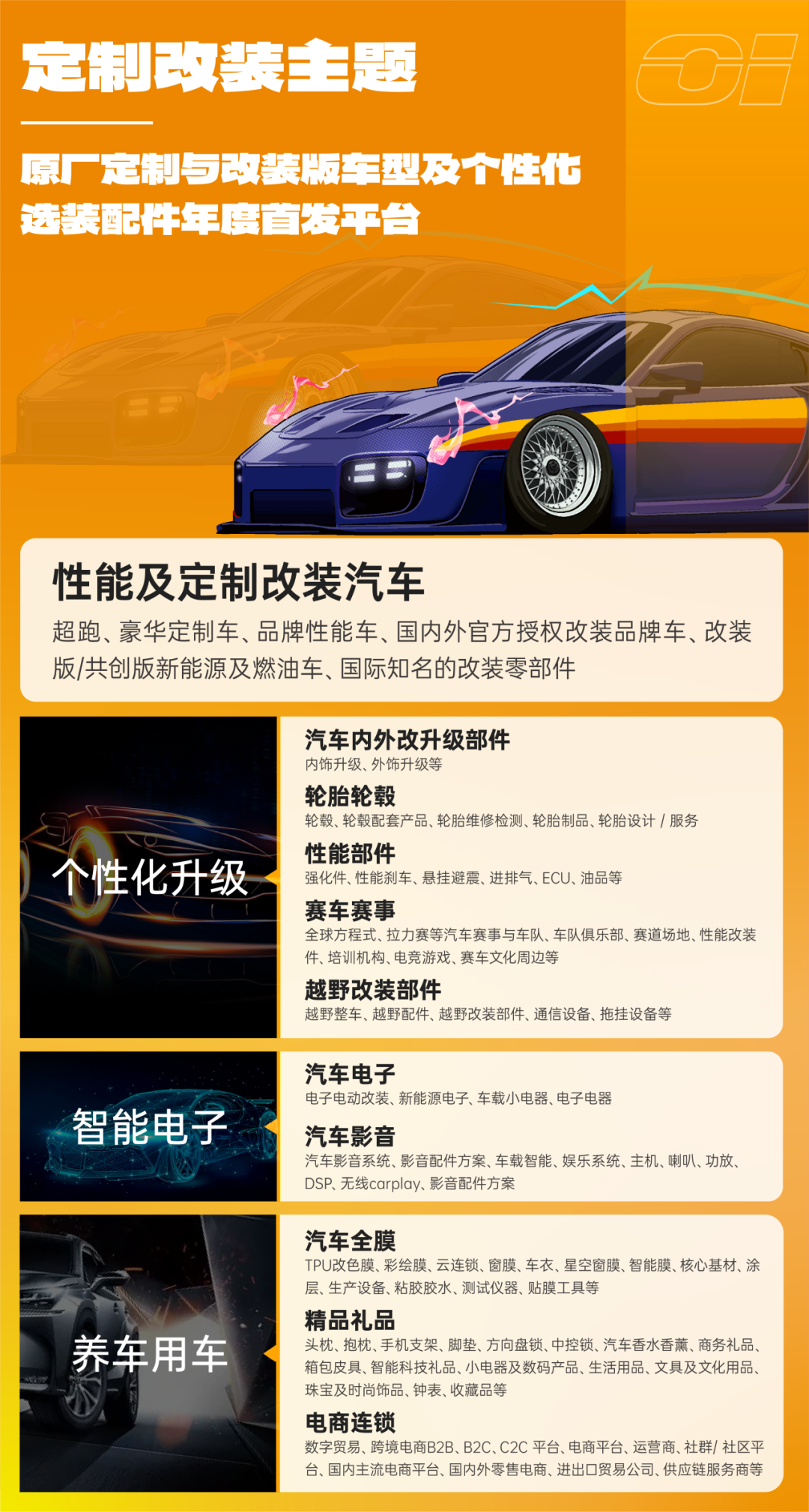 2026九州汽车生态博览会由定制改装、汽车科技、汽车零部件、商用车、房车露营、汽车文化6大主题组成,全景展现全球汽车产业链的技术迭代产品创新与发展趋势,是全球第一个覆盖乘用车和商用车市场,集合整车发布、汽车科技、汽车零部件、汽车改装、汽车文化的全产业链B2B2C生态展贸平台。