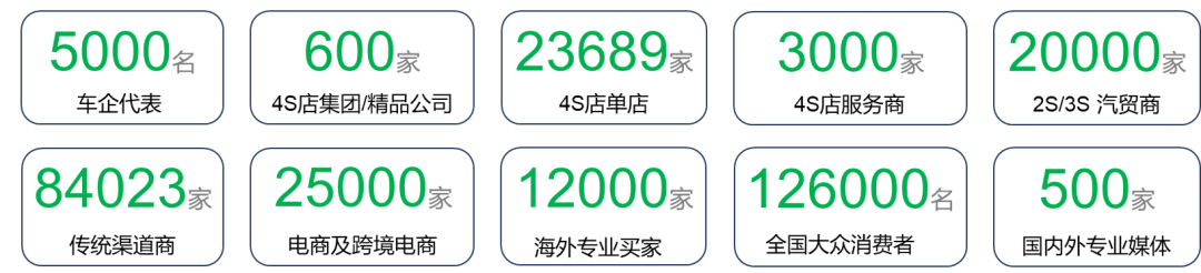 买家观众覆盖全球汽车产业从业人员:整车厂、汽车销售公司、精品公司、4S 店集团、4S服务商、2S/3S汽贸商、省市代理、电商及跨境电商、连锁加盟、终端店、改装店、维修厂、汽车爱好者与消费者等,依托精准商贸对接平台,助力展商高效开拓海外新兴市场,抢占全球供应链变革先机。