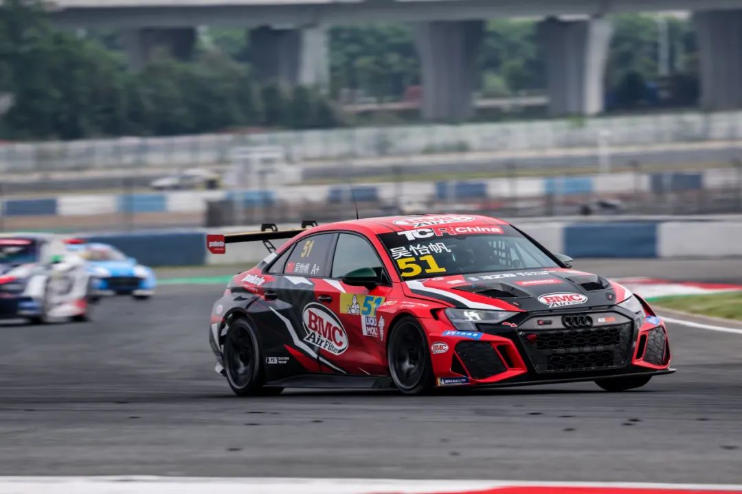 其中,51号第二代奥迪RS3 LMS TCR赛车已经披上了BMC专属涂装,由车手吴怡帆驾驶。在本站比赛中,吴怡帆驾驶51号赛车于首回合比赛中力拼对手,最后一圈成功超越,夺得全场亚军。