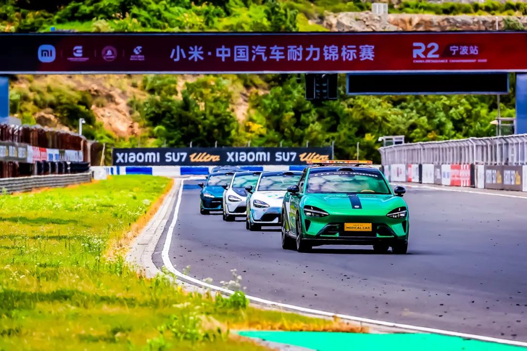 周日的宁波持续高温,赛道地表热浪蒸腾。2025赛季CEC总冠名赞助商小米继续派出赛事官方安全车小米SU7 Ultra和官方医疗车小米YU7为比赛保驾护航。其中,小米SU7 Ultra多次在比赛中出动,带领赛车在突发状况下安全前行;小米YU7搭载专业急救设备在比赛期间严阵以待,负起保障赛事安全的核心使命。