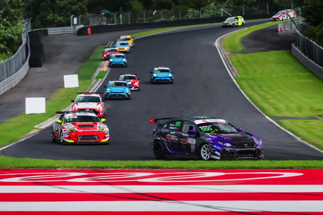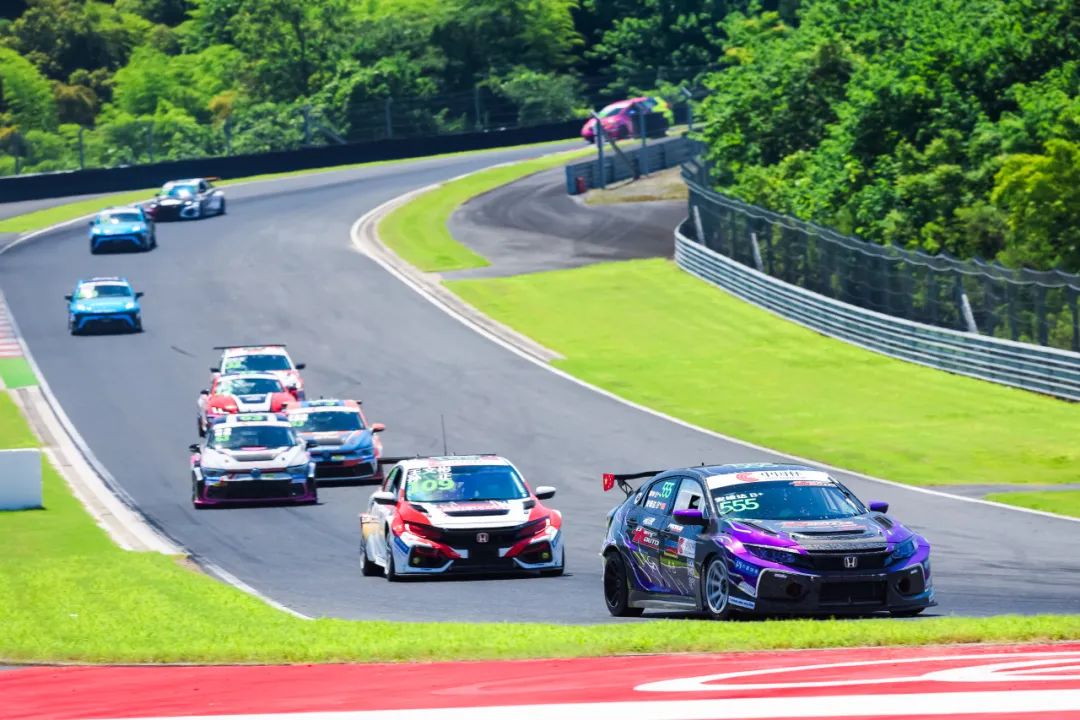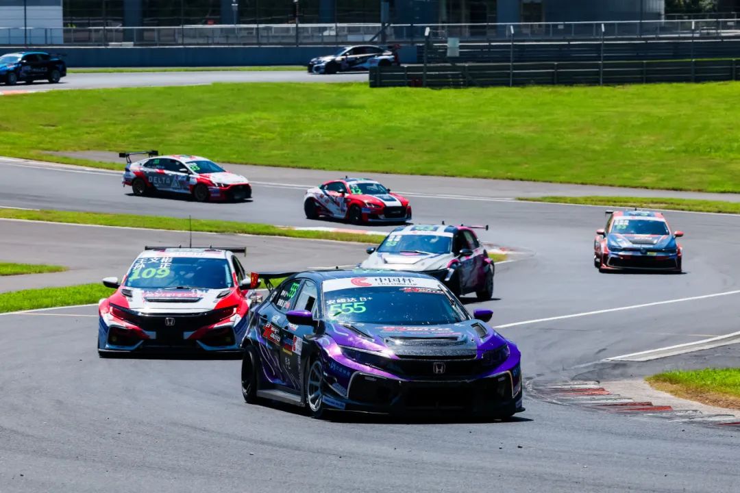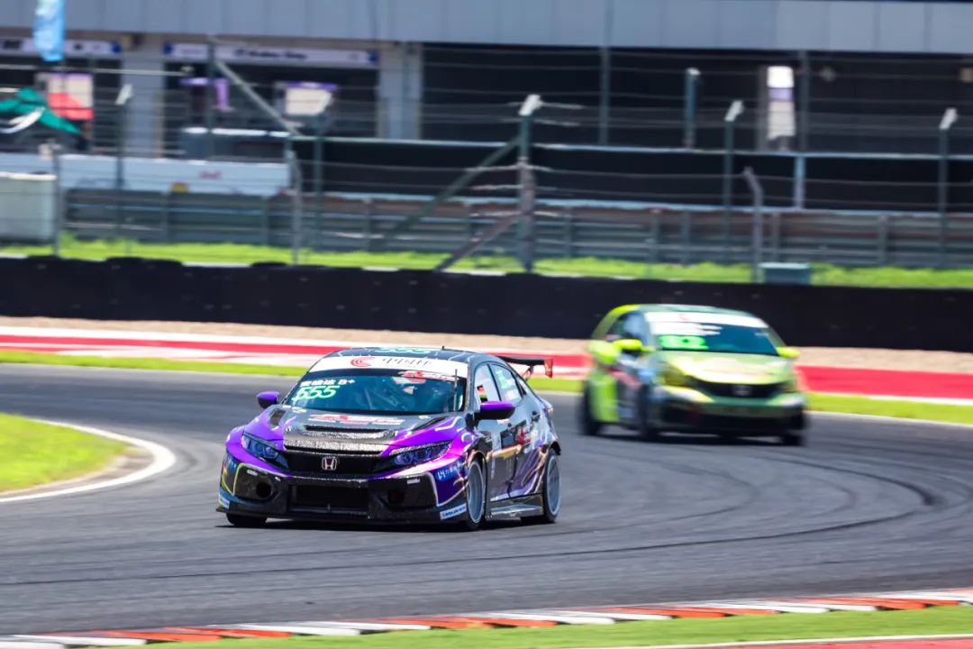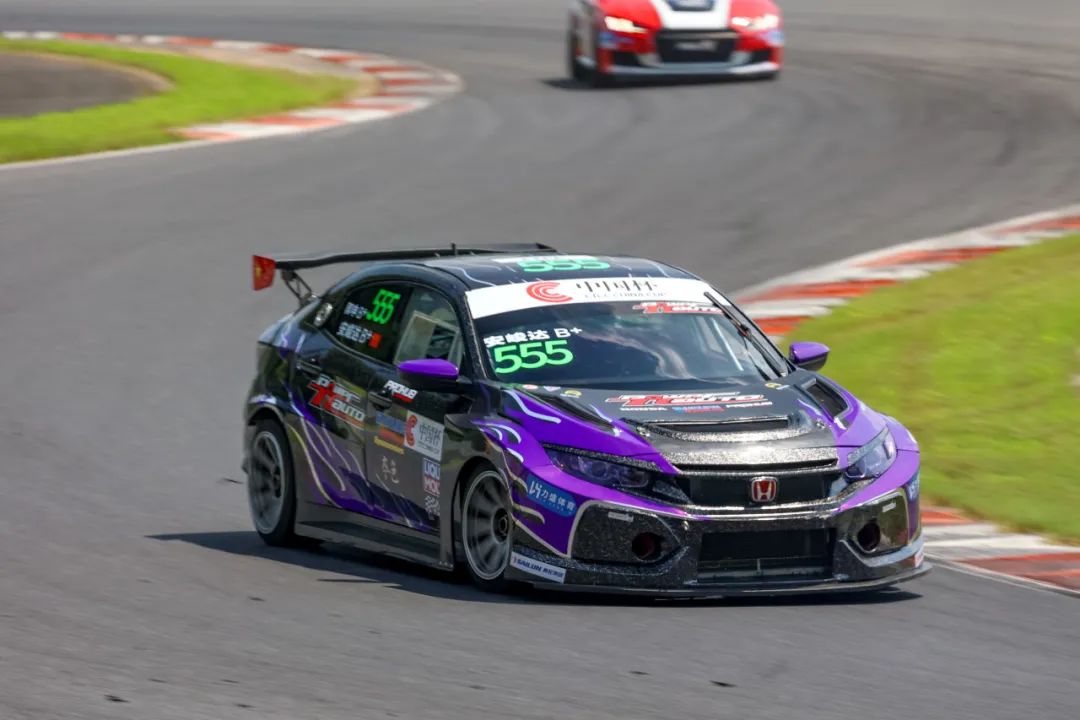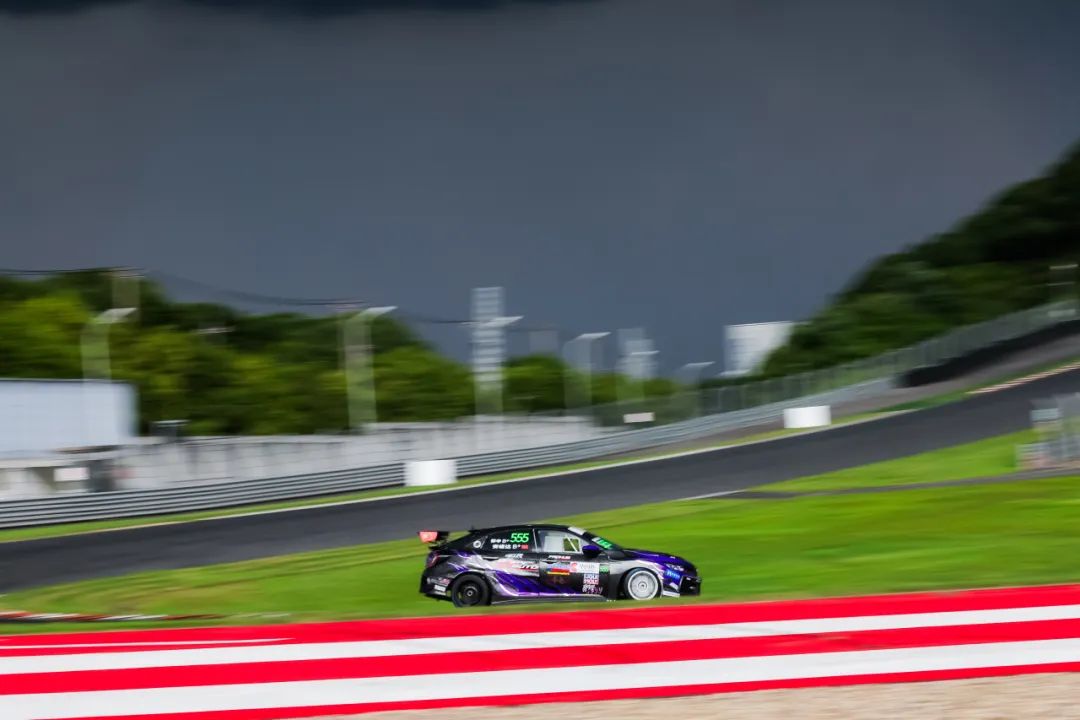 6月29日第二回合正赛,随着天气的好转,一众参赛车手再次迎来了极致的高温考验,北京七度车队再次在TC1组别第一位迎接“55分钟+1圈”的激烈角逐。555号车组在比赛伊始短暂被同组别的对手超越,落到第二位,但车组快速完成了反击,重夺组别头名。
