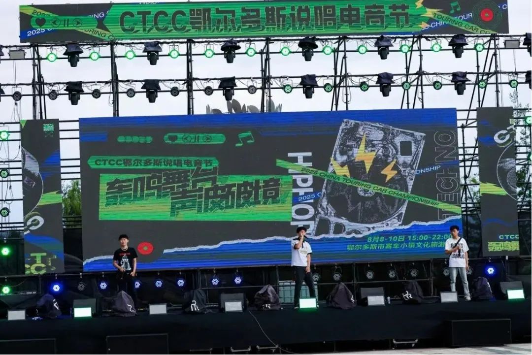 赛道之外同样精彩同样纷呈。惊险刺激的汽车特技表演赢得阵阵喝彩,动感十足的CTCC鄂尔多斯说唱电音节点燃现场氛围,近距离的车手签名会搭建起车迷与明星车手的沟通桥梁。