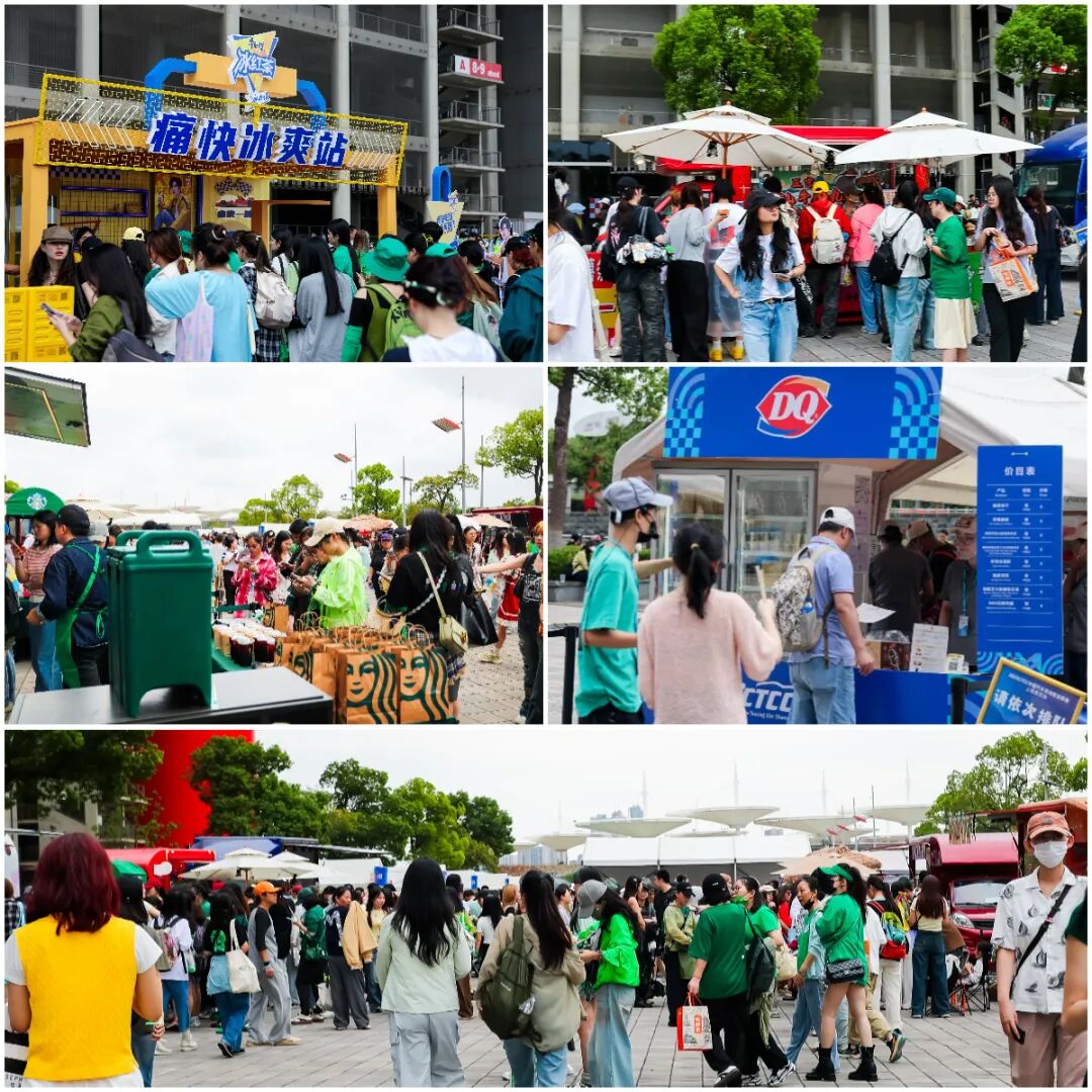 活动区另一侧设置环球美食街,康师傅冰红茶、星巴克、DQ等知名品牌及来自全国各地的小吃进驻现场,让观众味蕾满足,观赛欢呼时能量满满。