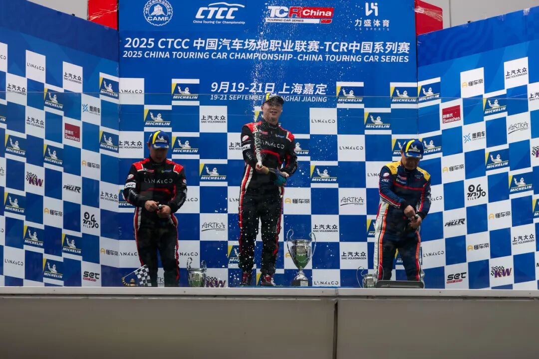 2025年CTCC中国汽车场地职业联赛上海嘉定站于9月20日至21日在上海国际赛车场举行。领克捷凯车队在本站比赛中展现出强大实力,周六朱戴维夺得全场亚军,周日张志强与朱戴维更是包揽车手杯冠亚军,车队同时斩获本回合车队杯及车型杯冠军,以统治级表现证明了其在中国汽车场地职业联赛中的领先地位。