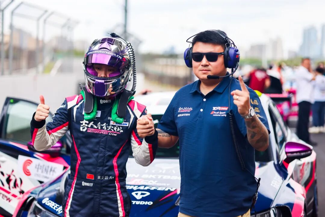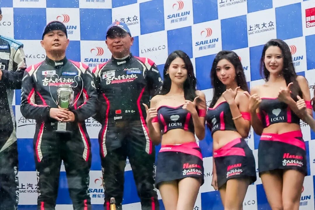 第二回合正赛,湖南吉人自有天相车队凭借强大竞争力闪耀沪上赛场,全场第二十一位发车的16号车组傅斌/章文滔在赛事伊始即完成多次精彩超车,跻身前列,车组更是在最后冲刺阶段提升至全场第二、TCS组别第一。需知道,在本站两回合比赛中,16号赛车均为章文滔独立驾驶完成。面对场上40多台赛车群雄,他沉着应战,携队友傅斌登上最高领奖台。可以说,不论是驾驶速度、攻防技巧、作战心态,都有质的提升!
