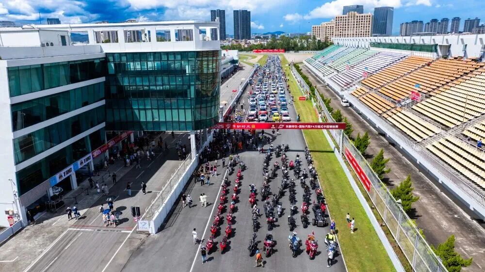 乐动时光最受瞩目的赛道巡游活动也于赛事期间再次上演,来自粤港澳大湾区的车迷齐聚一堂,超过200台车辆畅享赛道驾驶乐趣。尤为引人注目的是,由巡航、街车、仿赛等多类机车组成的摩托车方阵,为这场巡游注入了最原始的机械激情。