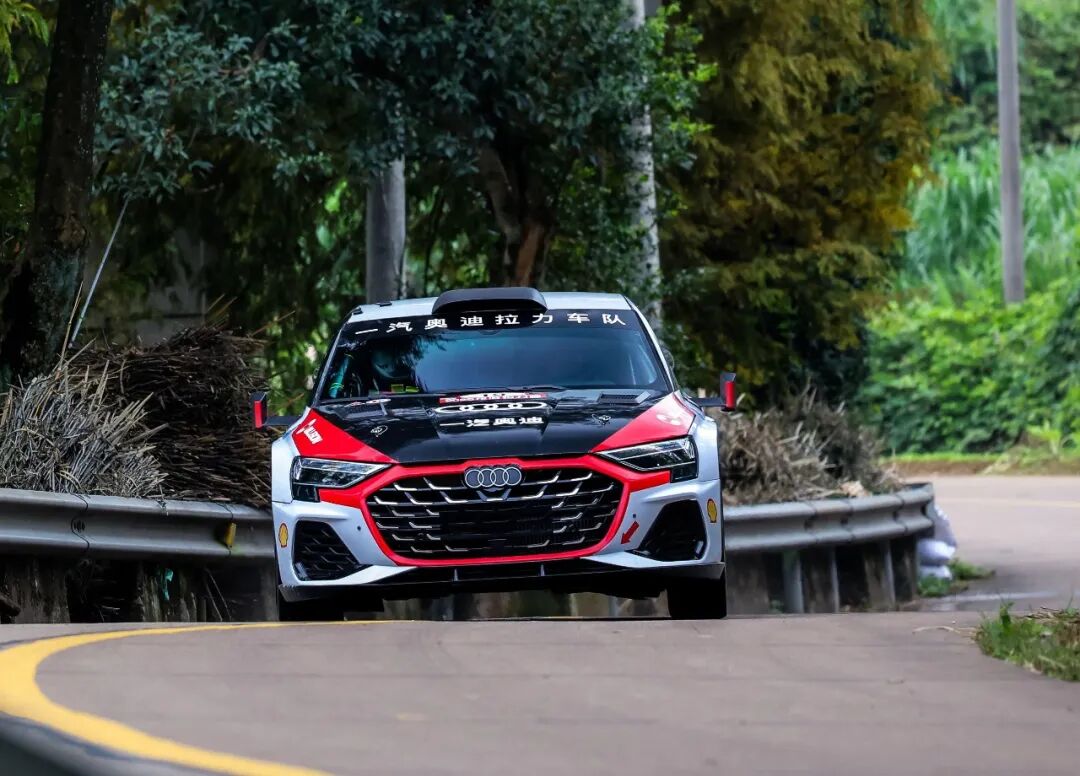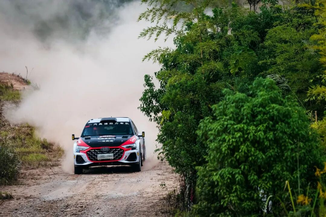 龙游赛道素以“魔鬼赛道”著称:水泥、柏油、砂石路面交替出现,赛段狭窄多弯、坡度陡峭,对赛车综合性能与车手适应能力提出极限要求。历史数据显示,龙游站历年平均完赛率不足55%,堪称国内最难完赛的拉力赛场。面对复杂赛况,一汽奥迪拉力车队凭借quattro全时四驱系统与车队精准的赛段差异化调校策略,在轮胎选择与底盘设定上实现最优解,全程保持强劲竞争力。