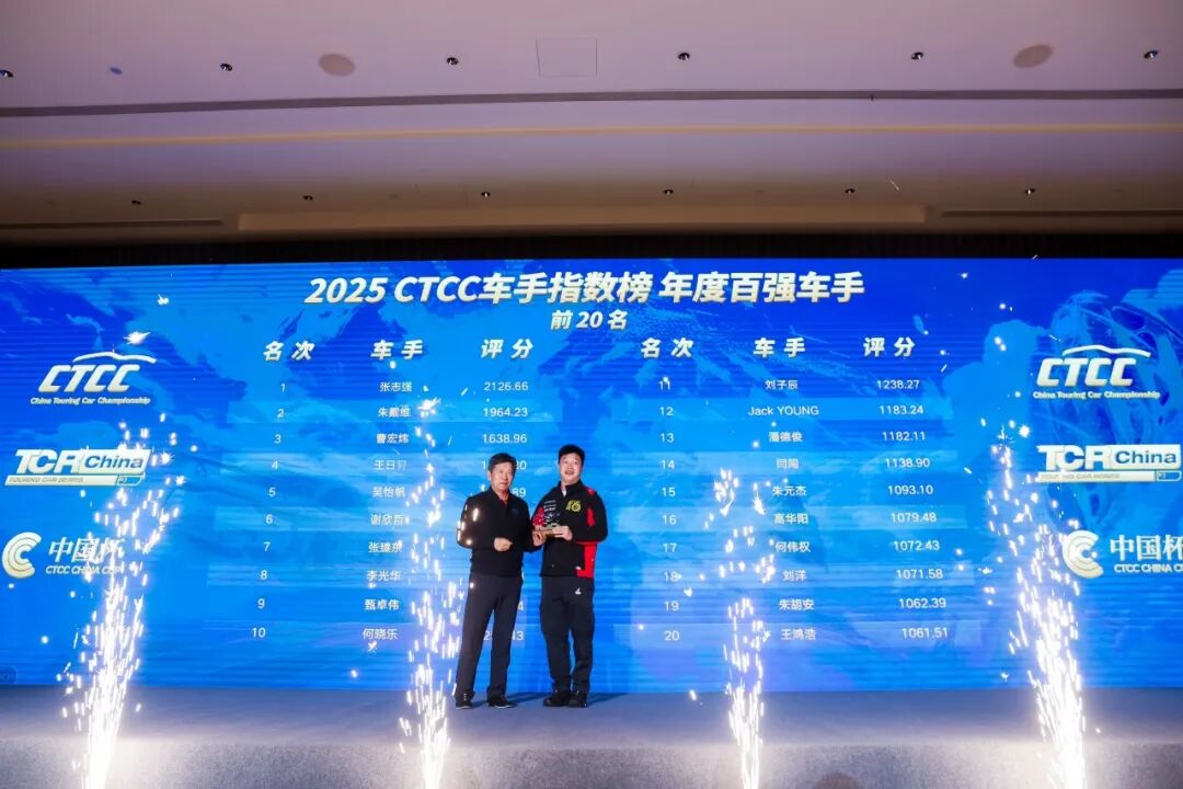 中国汽车摩托车运动联合会主席詹郭军为CTCC车手百强榜榜首颁奖