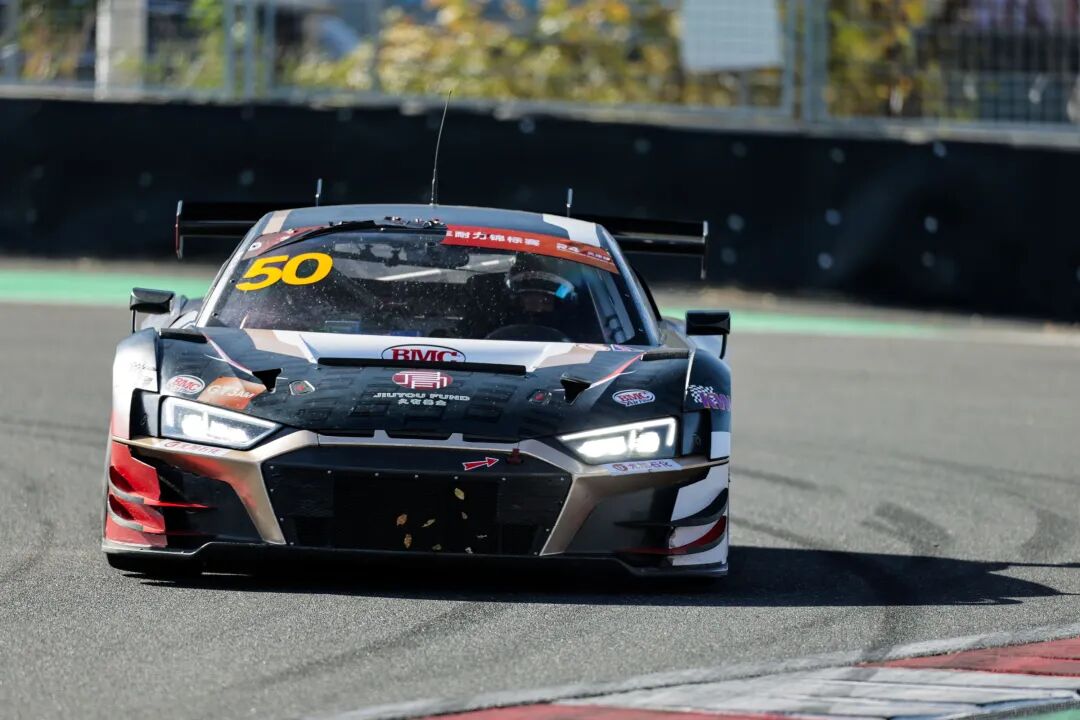 驾驶50号奥迪R8 LMS GT3 EVO II战车的吴怡帆/刘子辰几乎比赛全程均保持在全场领跑位置,仅在与其他车组停站策略交错时将头名拱手让出。尽管一度陷入车阵纠缠,但吴怡帆/刘子辰依旧凭借出色的速度,在繁忙的交通状况中接连超车,重返榜首。