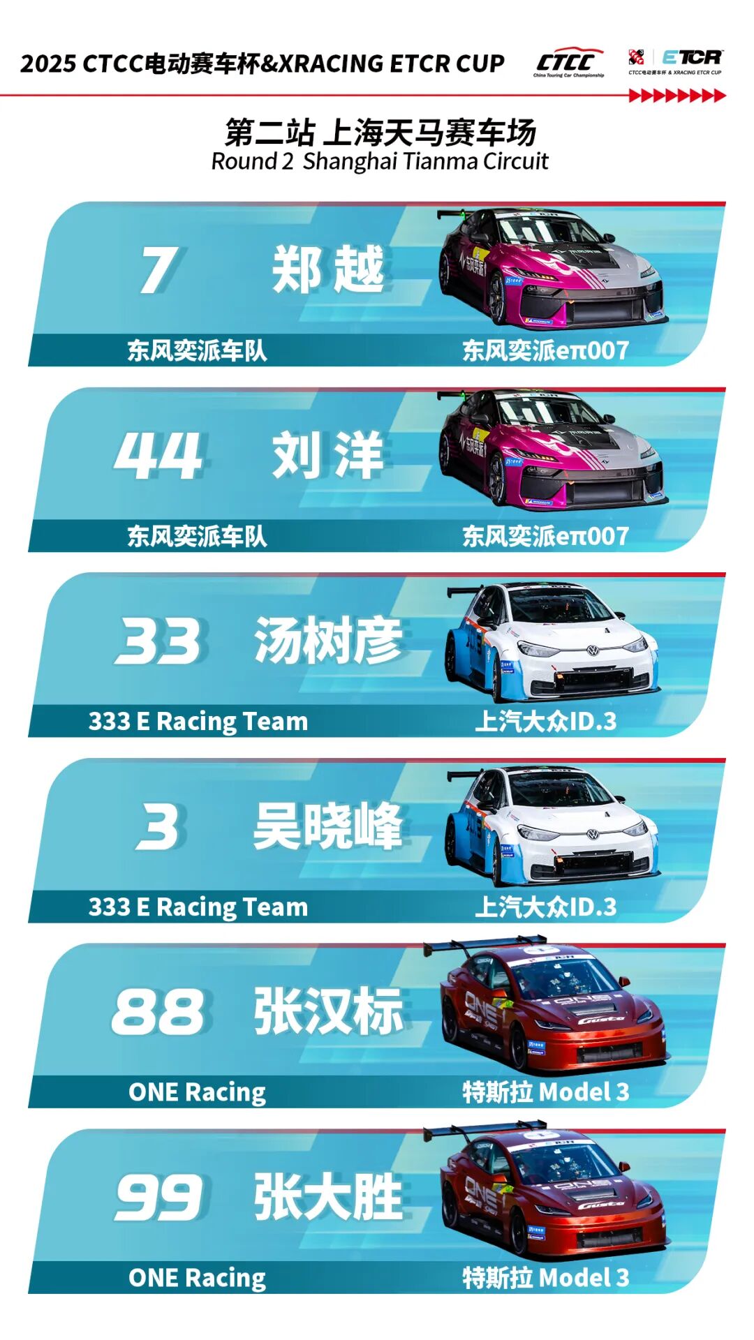 ONE Racing的特斯拉 Model 3赛车将在本站迎来首秀,张汉标与张大胜两位拥有丰富国家级赛事经验的选手将在全新赛场展现实力,为赛事注入新的看点。