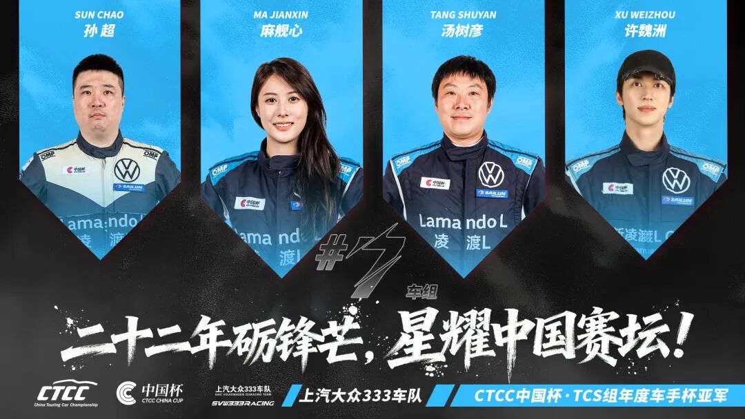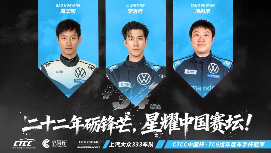 2025赛季CTCC中国汽车场地职业联赛落下帷幕,老牌劲旅上汽大众333车队以无可匹敌的统治力,包揽CTCC中国杯TCS组别年度车队杯冠军及年度车手杯冠、亚军荣誉,用实力续写赛道传奇。