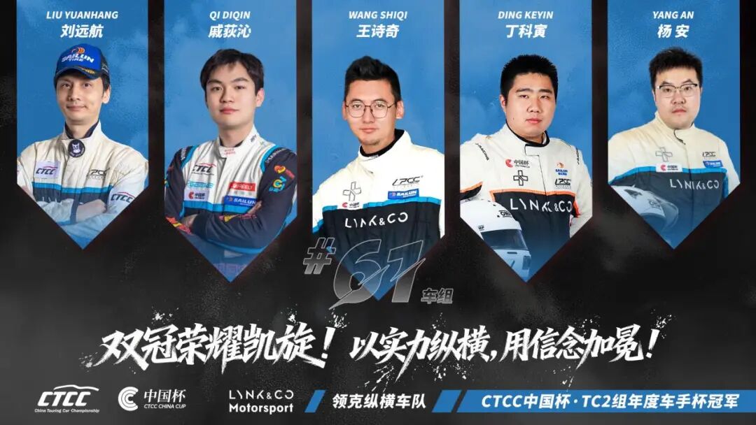 随着全年赛事落幕,领克纵横车队以多车组轮番登顶的集群优势,完美诠释了“冠军团队”的内涵。最终,领克纵横车队斩获CTCC中国杯TC2组年度车队杯冠军,61号车组锁定年度车手杯冠军,100号车组收获年度车手杯亚军。领克纵横车队在年度车队杯和年度车手杯双线丰收,为赛季画下圆满句点。