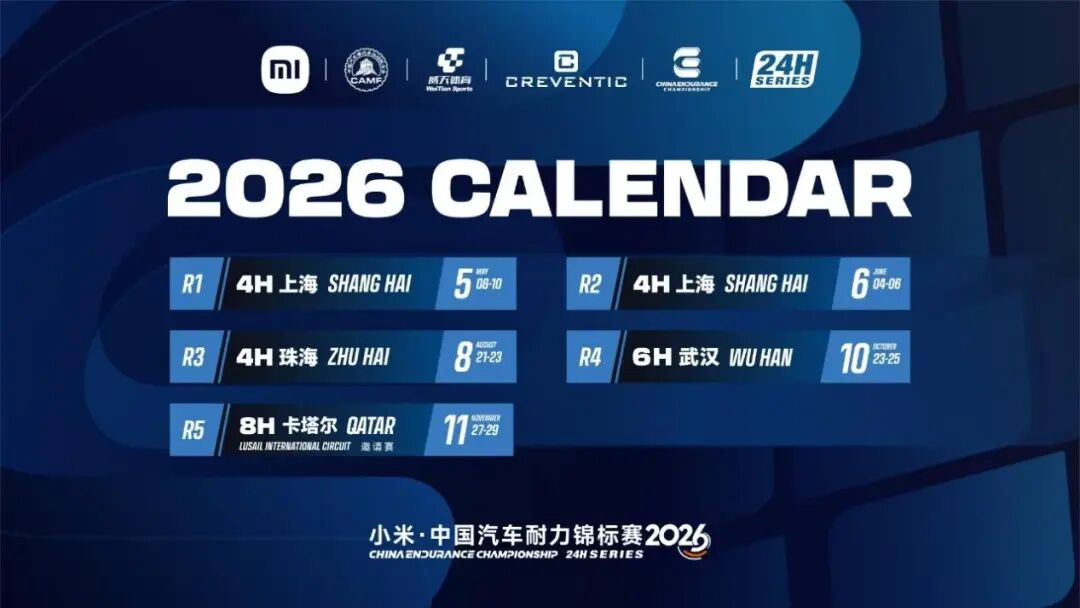 2026赛季CEC将在上海、珠海、武汉、卡塔尔等国内外知名专业赛车场展开角逐,设多站分站赛及年度收官战,各分站均含排位赛与正赛环节。耐力赛对车手的驾驶技术、体能储备,以及车队的战术制定、团队配合均提出极高要求。