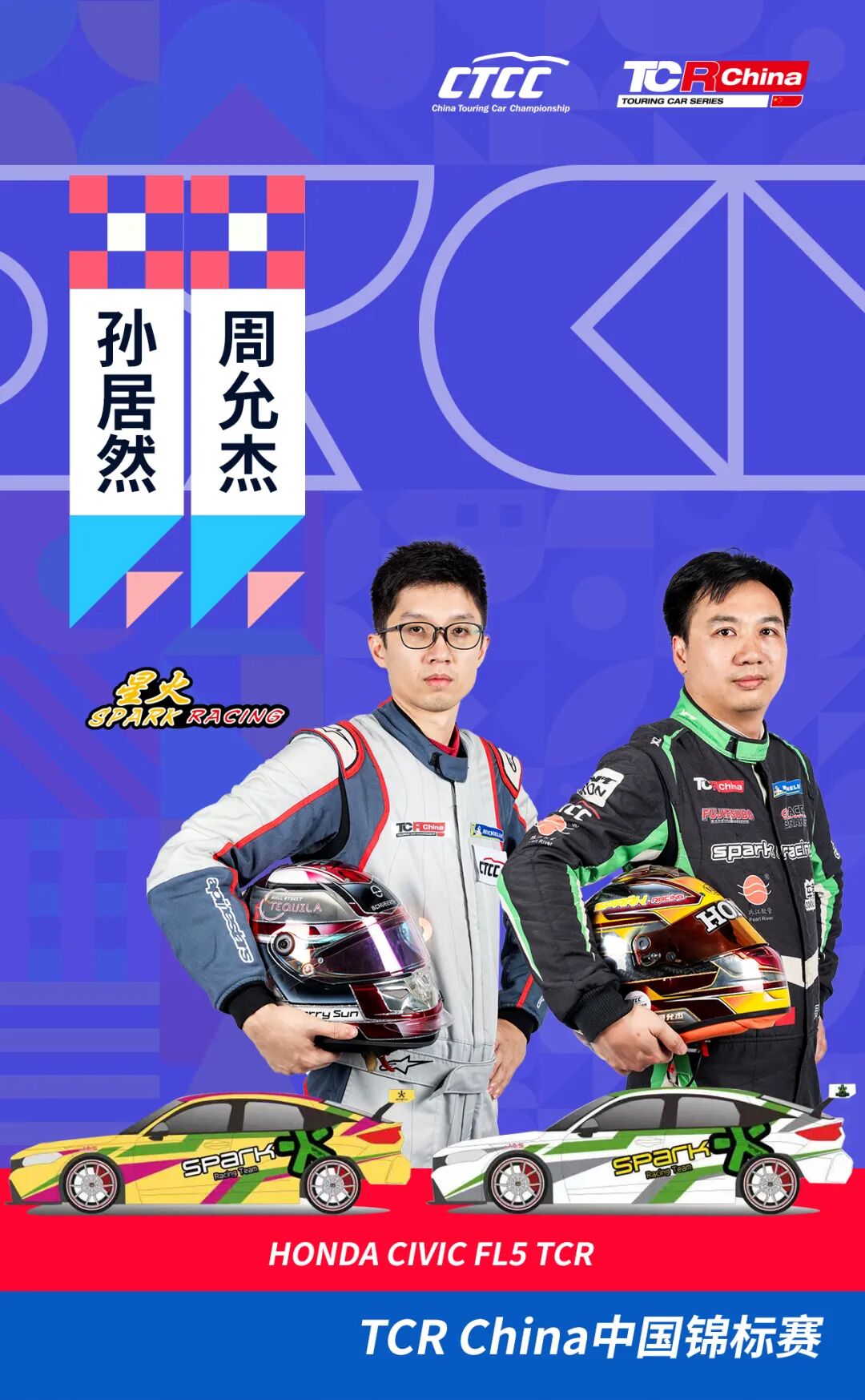 广州星火Spark Racing车队的阵容更具层次感。TCR中国锦标赛方面,周允杰和孙居然均驾驶本田思域FL5 TCR赛车,周允杰以稳定见长,孙居然则在上赛季斩获TCR中国挑战赛年度亚军,今年志在更进一步。