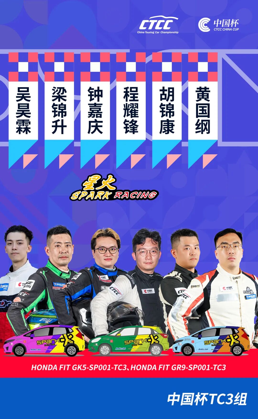CTCC中国杯TC3组则派出三台本田飞度赛车:吴昊霖/梁锦升车组、钟嘉庆、程耀锋/黄国纲/胡锦康车组。其中,钟嘉庆是上届TC3组年度冠军,今年目标是“忘记过去,从新出发”;吴昊霖/梁锦升车组期待成为年度冠军争夺者;程耀锋/黄国纲/胡锦康则争取分站登台。