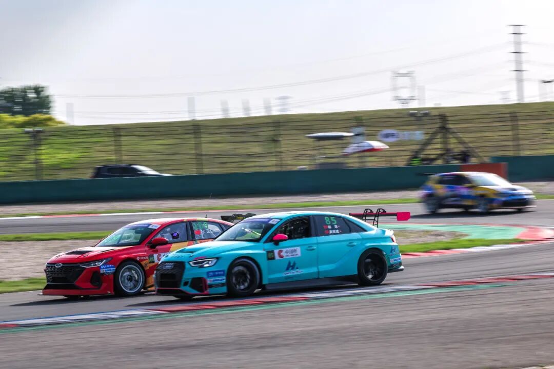 钟毅展/傅斌在开局阶段一度建立接近2秒的领先优势,但刘柠/赵世彦/吴怡帆/杨安连续数圈收窄差距,两车之间秒差慢慢回到1秒左右。第五圈,刘柠/赵世彦/吴怡帆/杨安已经接近钟毅展/傅斌车尾。后方第二集团的争夺中,涂雅特/徐丹逐步占据先机,该车组先是在后直线末攻破林浩/吴就成防线跻身全场第五,随后又追上孙正并成功超车再上一位。后方战团中,上海Delta Racing Team车队房俊言/张佳琪此时处在TC1组别头名。