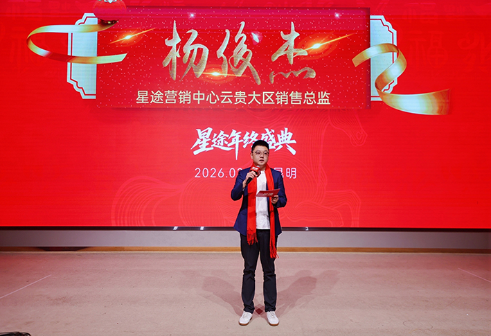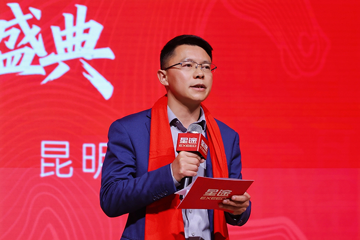 星途营销中心云贵大区销售总监杨俊杰先生首先登台致辞:"我们始终坚信:星途车主不是消费者,而是星途大家庭的一份子。每一位选择星途的车主,都是我们最珍贵的家人。"