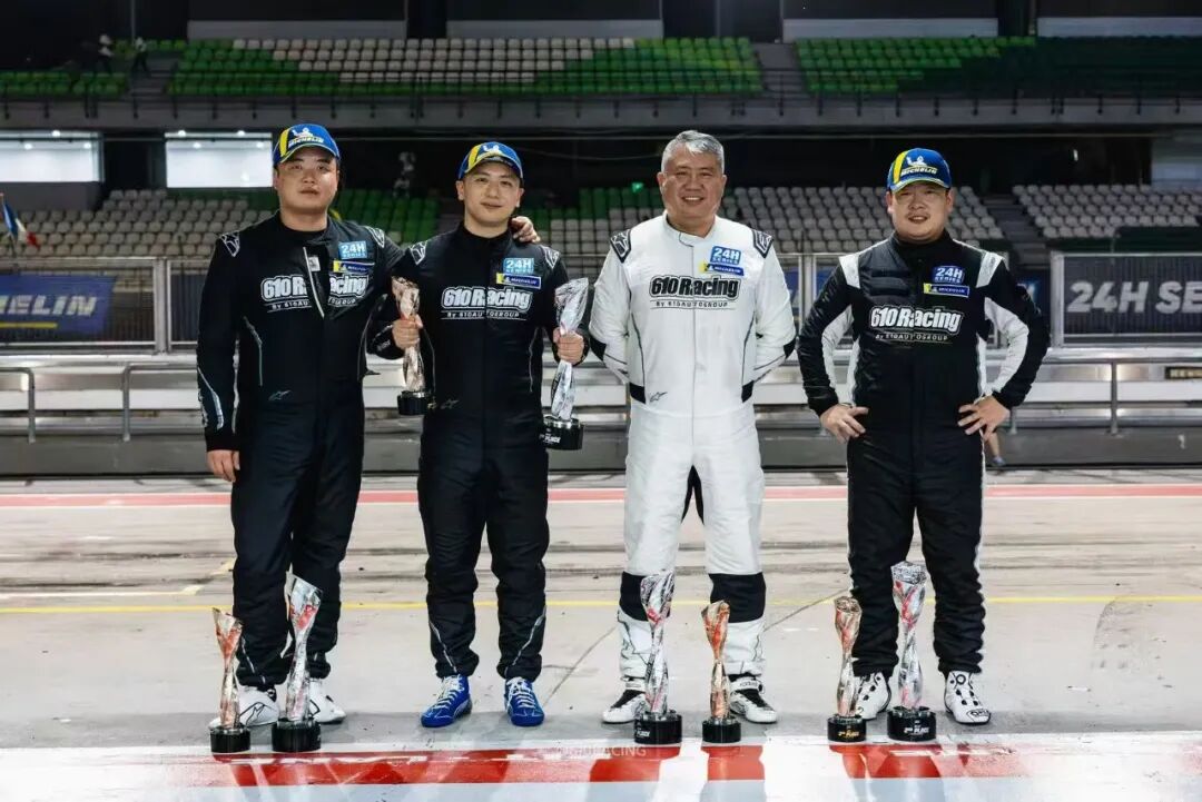 陆志威、李麟、曹其宽、杨豪杰本次代表610Racing参与992组,在排位赛夺得992-AM组杆位,并在12小时的正赛中稳定完赛,斩获992组季军和992-AM组亚军。