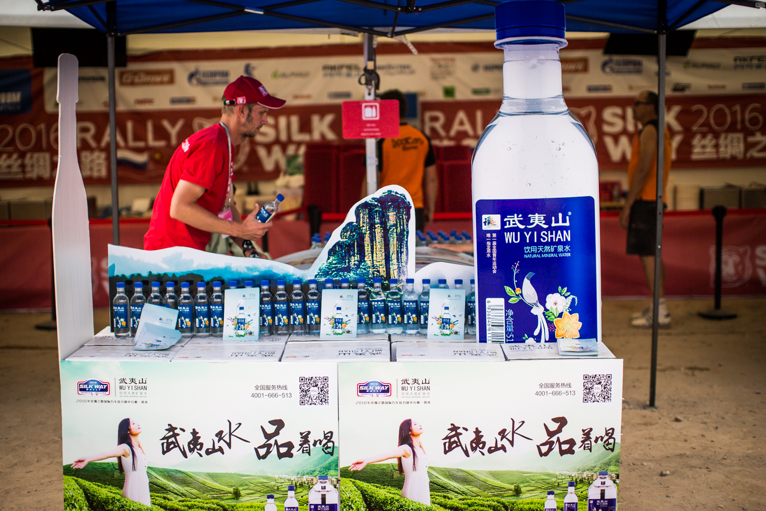 在赛事大营中,我们见到了武夷山水公司的总监林星雨先生,他正和同事们一起为大营内的国际友人以及工作人员准备矿泉水。林星雨总监向记者介绍了本次赛事唯一用水:“武夷山矿泉水采自福建武夷山脉地下300米处的花岗岩层,是一款偏硅酸型的低钠低矿化度的矿泉水,很适合老人小孩和运动后的人群饮用,也正是因为这些特质,武夷山矿泉水在上市之初就被指定为中国首届青运会官方用水,也被选为此次丝绸之路国际汽车拉力赛官方用水。”