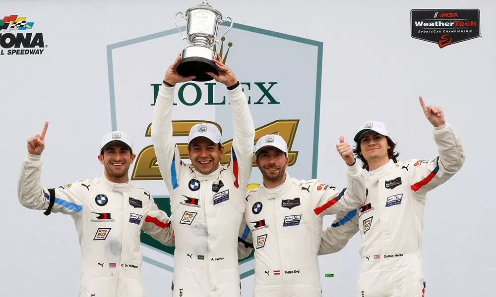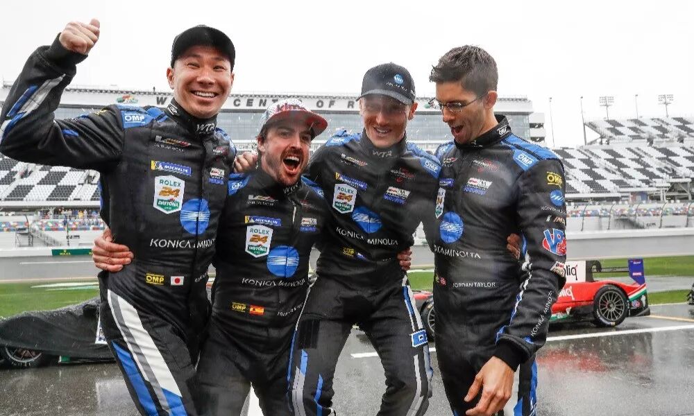 北京时间1月28日凌晨,第57届戴通纳24小时耐力赛于美国佛罗里达州戴通纳国际赛道落幕。受连绵不绝的大雨影响,比赛后半程堪称“赛艇大战”,众多车组接连折戟,赛事也两度被红旗打断。在比赛剩下11分钟时,赛会提前出示方格旗,最终Wayne Taylor Racing车队费尔南多·阿隆索/小林可梦伟/Jordan Taylor/Renger van der Zande车组表现出众,合力驾驶10号凯迪拉克DPi.V-R拿下本届大赛全场胜利,凯迪拉克也完成了IMSA WeatherTech跑车锦标赛自进入DPi时代以来的戴通纳三连霸。在比赛时间中,多发的事故和恶劣的天气让绿旗所持续的时长大大受限,但几大组别依旧为车迷们献上了精彩的竞技。