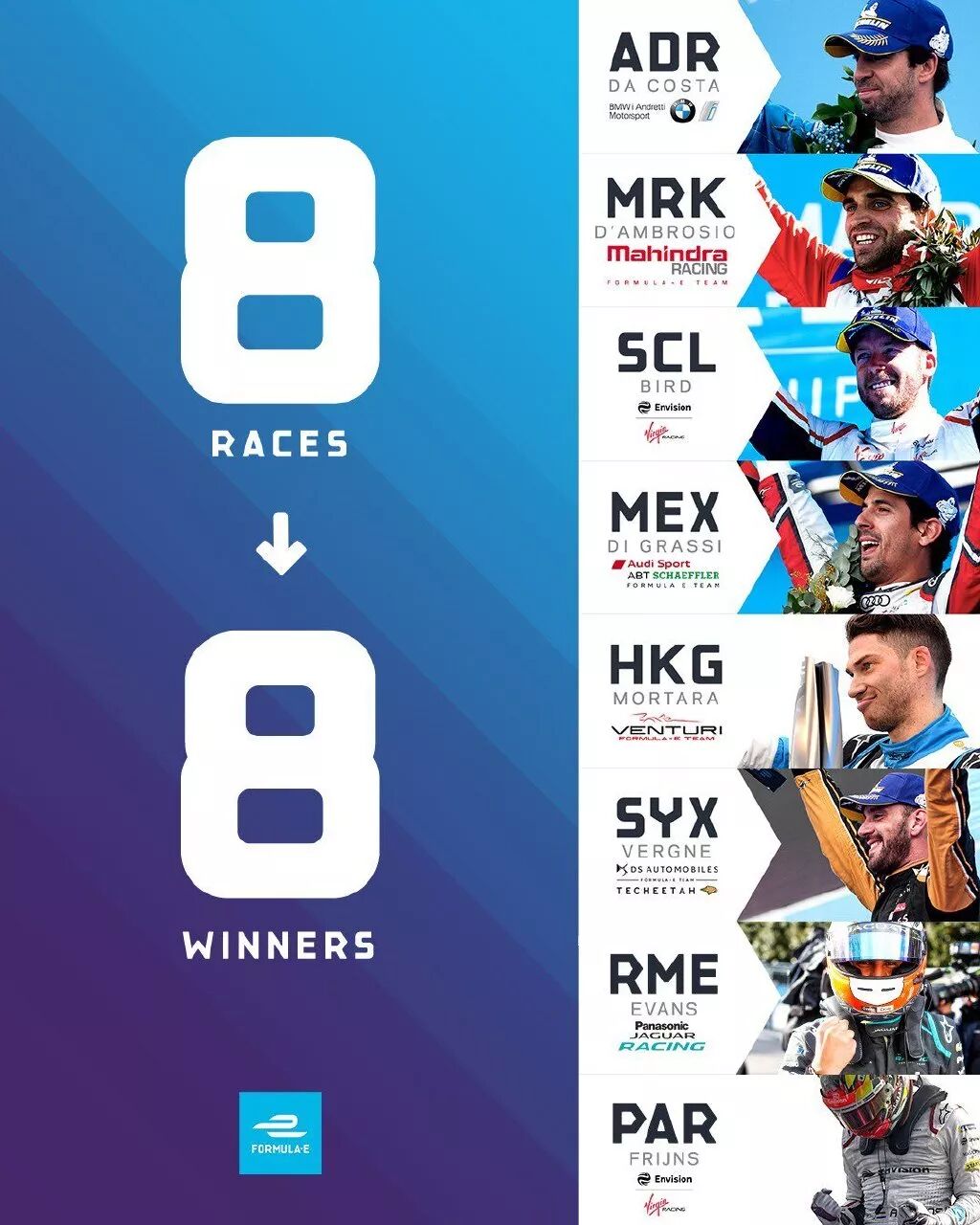 FE电动方程式锦标赛于巴黎迎来了又一轮混战,在大雨的搅局下,Envision Virgin Racing车队Robin Frijns成为本赛季第八位冠军车手,Envision Virgin Racing也成为了今年第一支复制胜利的车队,但八站比赛过后,仍然没有车手能在这项赛事中取下赛季第二胜。DS TECHEETAH车手Andre Lotterer和奥迪车手Daniel Abt分获二三。