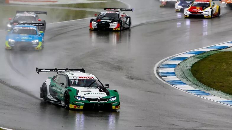 DTM新赛季于霍根海姆赛道揭开大幕,在首回合的雨战中——杆位得主,两届冠军Marco Wittmann虽在比赛中遭遇了奥迪车手René Rast的挑战,但由于Rast坏车退赛,Wittmann得以为宝马阵营拿下DTM新纪元的开门红,奥迪阵营的Mike Rockenfeller和Robin Frijns分夺亚季军。