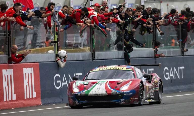 得益于更加接近的BoP,GTE-Pro组别六大厂商在本届赛事中上演终极大乱斗,随着宝马和福特下赛季不再回归,这场比赛也堪称GTE规格发展至今的巅峰一役。AF Corse车队Alessandro Pier Guidi/James Calado/Daniel Serra车组驾驶着51号法拉利488 GTE EVO在漫长的对决中抓住了所有的致胜因素,最终力破保时捷、科尔维特和福特等一众强敌的围追堵截,让跃马自2014年之后再度登顶勒芒GTE-Pro组别。恰逢意大利厂商在勒芒首次夺冠的70周年,三位法拉利车手用胜利纪念胜利。