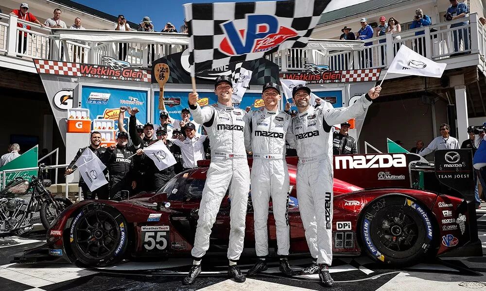 F1之外,同样有另一家日本制造商在多年的坚持与努力下取得了成功。在IMSA WeatherTech跑车锦标赛第六轮,也是本赛季米其林耐力杯第三轮的沃特金斯·格伦6小时耐力赛中,Mazda Team Joest的Harry Tincknell/Jonathan Bomarito/Olivier Pla车组与队友Oliver Jarvis/Tristan Nunez/Timo Bernhard车组以0.353秒之差先后冲线,为马自达终结了奋战多年以来的冠军荒(上一次搭载马自达动力单元的原型车在比赛中斩获全场胜利已经是2011赛季ALMS美洲勒芒系列赛的巴尔的摩站)。而这也是马自达自2017年推出RT-24P赛车参战DPi组别以来的首个胜利。
