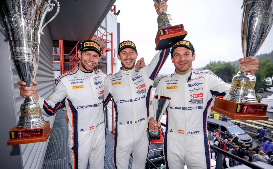 2019斯帕24小时耐力赛同样饱受豪雨侵扰,湿滑的赛道加上恶劣的能见度让场上事故频发,全场黄旗及安全车也多次出现,比赛甚至被红旗打断近6个小时,这也导致绿旗状态下的竞赛时间甚至没有过半——只有11小时38分钟。一片混战之下,GPX Racing车队全保时捷厂手阵容Kevin Estre/Richard Lietz/Michael Christensen驾驶的20号911 GT3 R最终笑到最后,以363圈的总成绩拿下桂冠,而法国人Estre在开局之初及赛事末段均以“超神”表现完成多次精彩超越,堪称本场比赛的最佳车手。