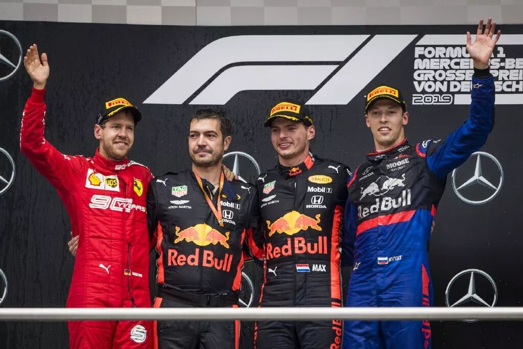 在过去的周末中,F1世界一级方程式锦标赛迎来了本赛季最跌宕起伏的剧情——作为本赛季的首场雨战,复杂的天气形势与赛道状况让诸多名将先后折戟。除了不怎么好的起跑之外,红牛车队头号车手马克斯·维斯塔潘以近乎零失误的表现在德国霍根海姆拿下自己的赛季第二胜。表现突出的还有排位赛遭遇赛车涡轮故障被迫从最后发车的法拉利车手塞巴斯蒂安·维特尔,经历前几场比赛的低迷之后,四冠王在自己的主场、同样是伤心地逆势上扬,一路赶超,最终以亚军完赛。小红牛车手丹尼尔·科维亚特也时隔多时,重返颁奖台。这也是1988年的澳大利亚大奖赛后首次有使用本田引擎的两支车队同时登台。