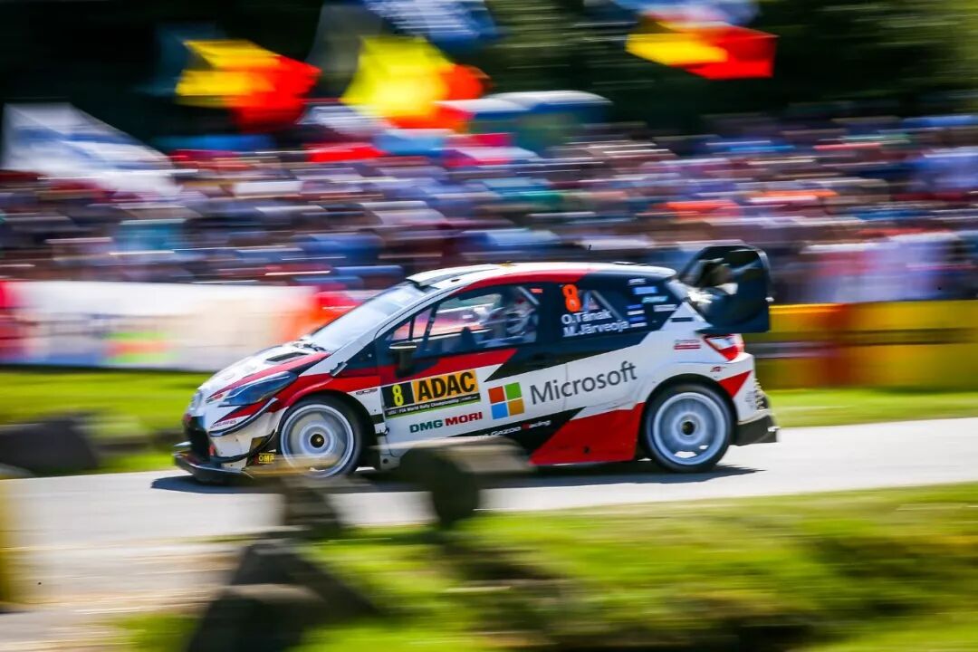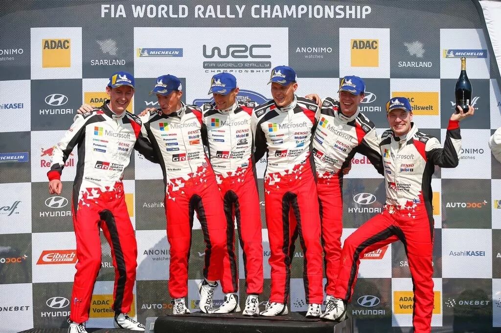 在WRC德国站的柏油路面上,丰田Gazoo Racing WRT车队的雅力士军团势不可挡,以包办前三之势横扫颁奖台,其中积分榜领头羊Ott Tänak拿下了近五个分站中的第四个胜场,其队友Kris Meeke落后20.8秒位居次席,Jari-Matti Latvala第三,这也是丰田回归WRC以来首次获此佳绩。Tänak的主要竞争对手——现代车手Thierry Neuville一度紧追在后,但比利时人在最长的Panzerplatte赛段中遭遇爆胎,最终只获得第四,也被甩开了33分的积分差距。厂商积分榜方面,现代的领先优势也被丰田缩近到仅剩8分。