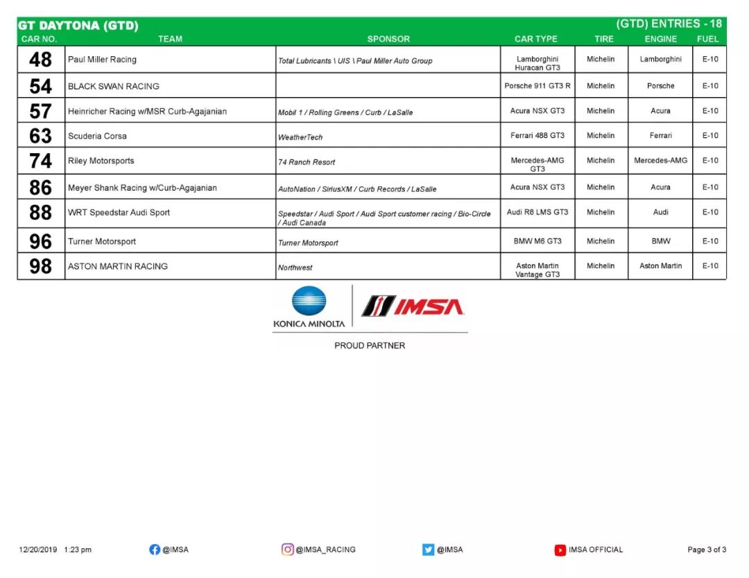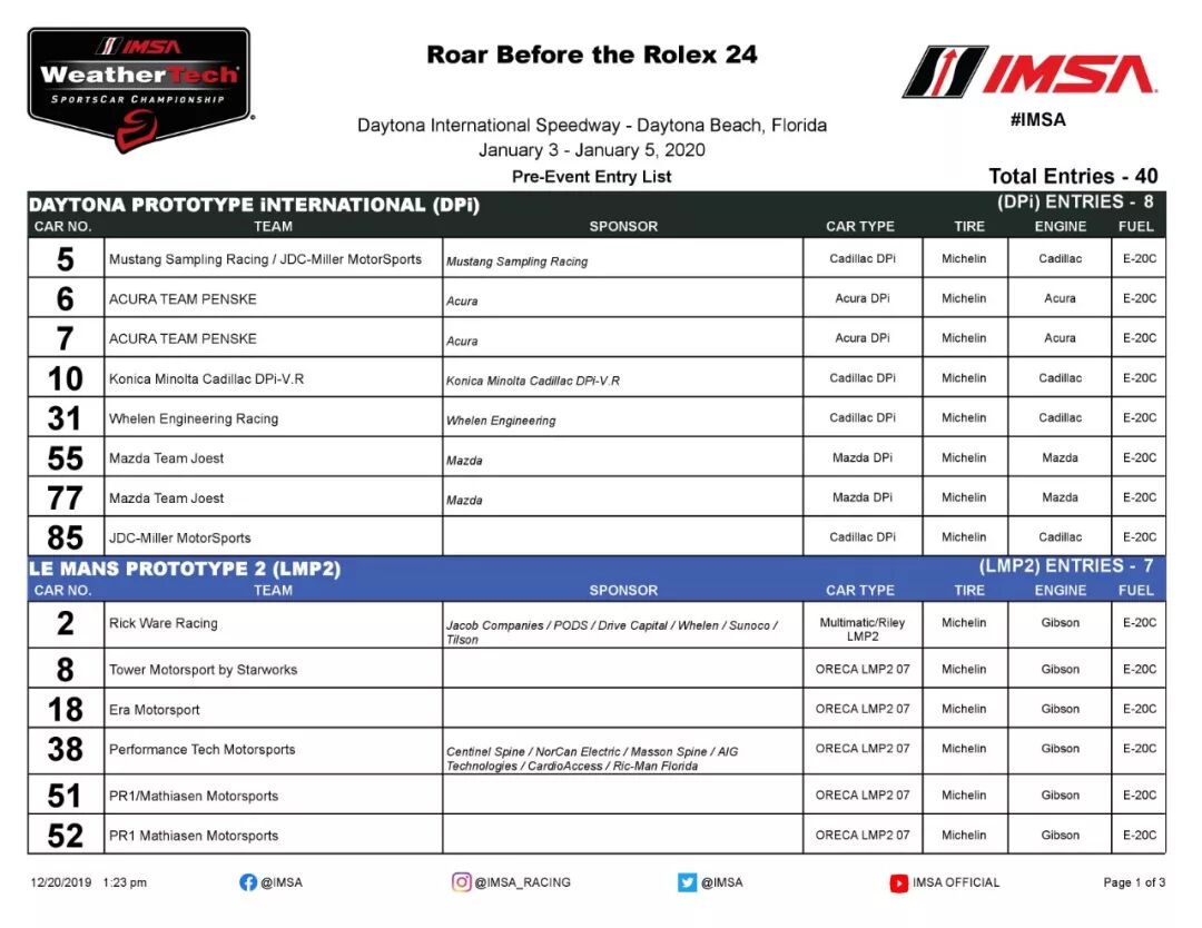 在千家万户喜迎新春佳节之际,北美跑车赛事方面已经拉开了新赛季的大幕——当地时间2020年1月25-26日,第58届戴通纳24小时耐力赛将于佛罗里达州戴通纳国际赛道进行。在此之前,所有赛车都必须参加强制性的赛前测试——ROAR BEFORE THE ROLEX 24,本次赛事的参赛名单以及性能平衡方案都已被公布。