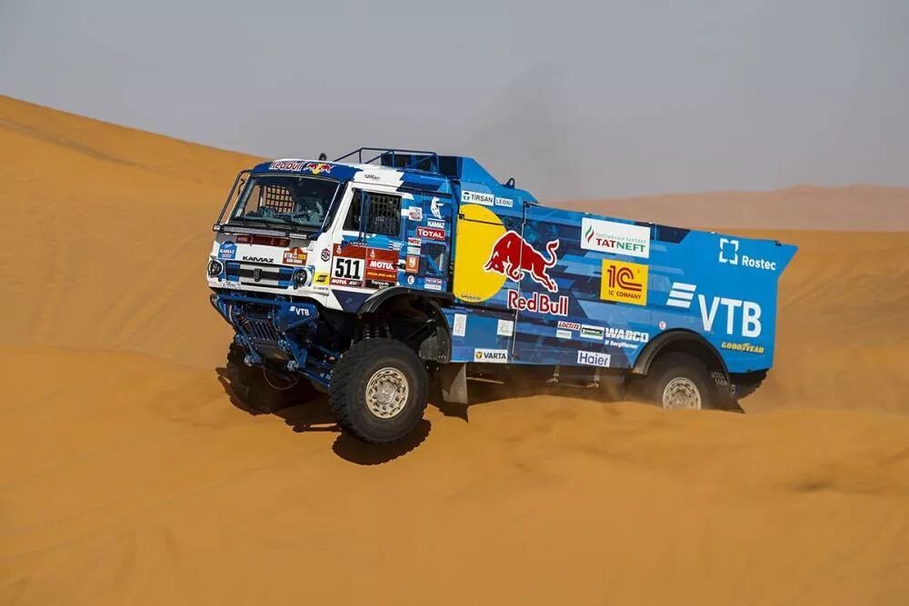 卡车组方面,卡玛兹军团的511号Andrey Karginov/Andrey Mokeev/Igor Leonov车组领跑,本田骑士Ricky Brabec依旧处在摩托组第一。