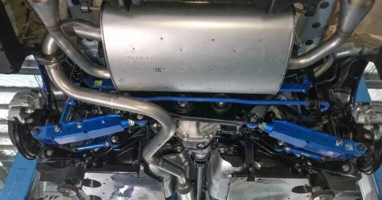 在了解了防倾杆工作原理后,我们不难发现:防倾杆的工作就是对抗左右弹簧不同步工作的力量。如果车上不使用防倾杆,为了达到相同的效果我们必须选择磅数非常高的弹簧,以及低速拉伸压缩阻尼非常大的避震调校,这样一来整台车就会变得极度灵敏,难以操控,舒适度更是打负分。所以说一副优秀的悬架,防倾杆与弹簧避震的配合至关重要。让我们回到标题,防倾杆真的越粗越好吗?更粗的防倾杆意味着对抗弹簧的力更大,转弯时侧倾更小。这看似很完美,实则不然:如果防倾杆的刚度太大,就会压制悬架的自由活动空间,极限情况下甚至会把内侧轮胎抬起——就像很多装备了扭力梁后悬的车那样的“狗撒尿”姿态,毕竟扭力梁本身可以看成一个巨大的防倾杆。轮胎需要接触地面才能获得抓地力,三个轮胎接触地面总是不如四个轮胎来得好,不是吗?